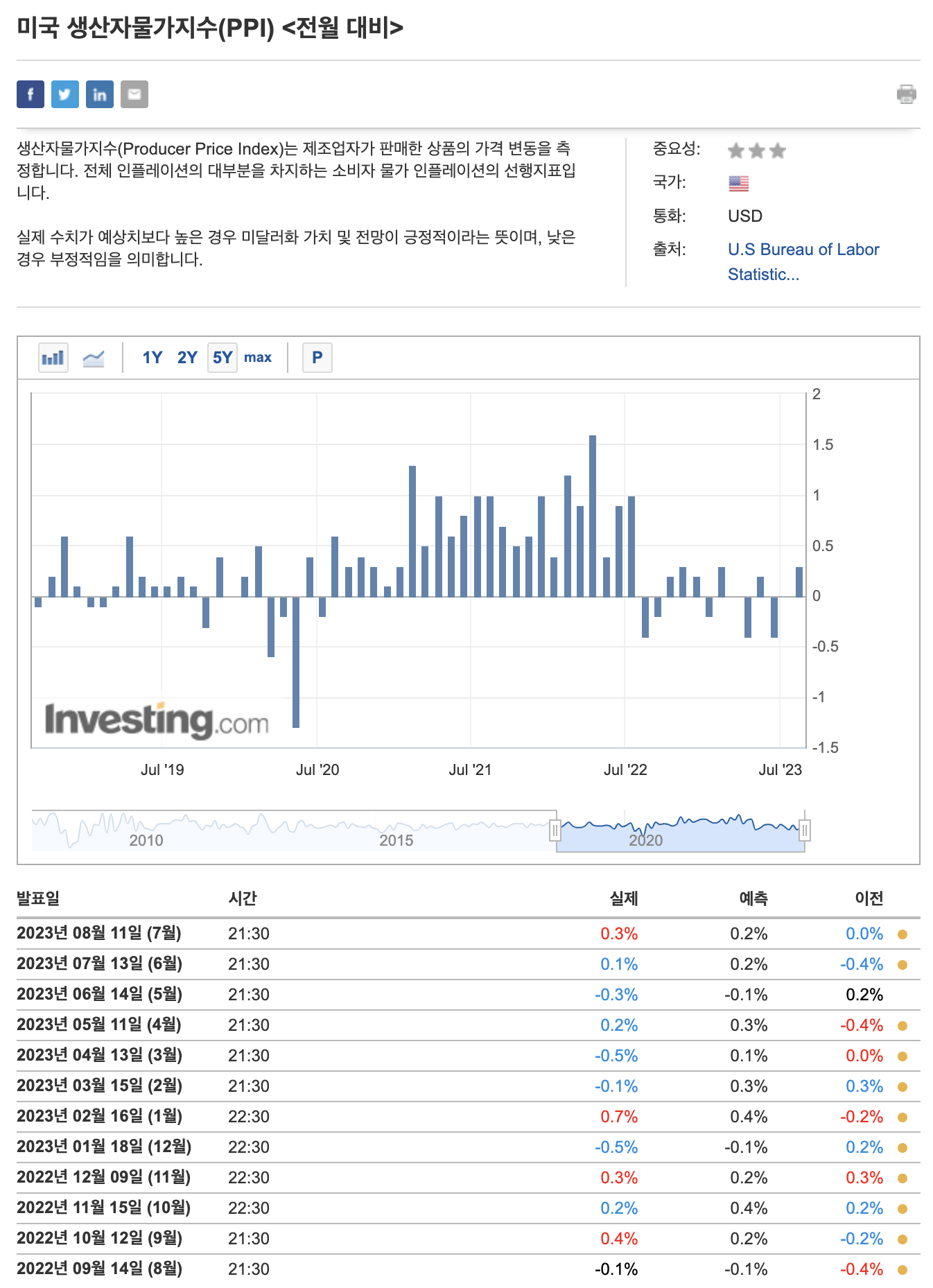 - PPI 8월(7월) : 0.0% --> 0.3%(예측 0.2%)