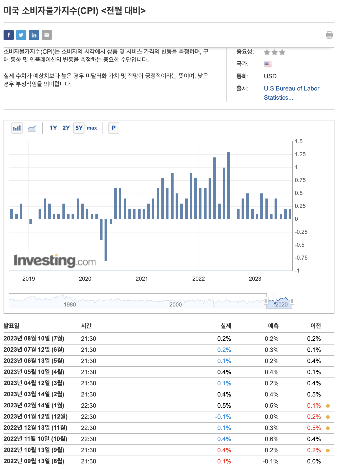 Q. 미국의 8월(7월) 소비자물가CPI 어떻게 나왔나요?