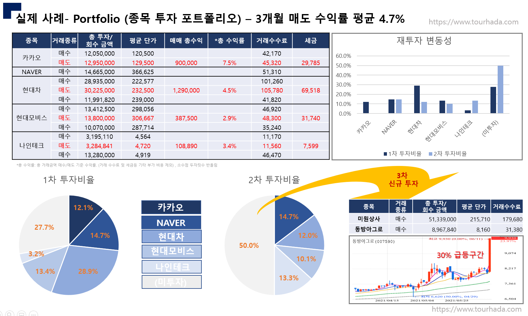 Portfolio (종목 투자 포트폴리오) – 3개월 매도 수익률 평균  4.7%