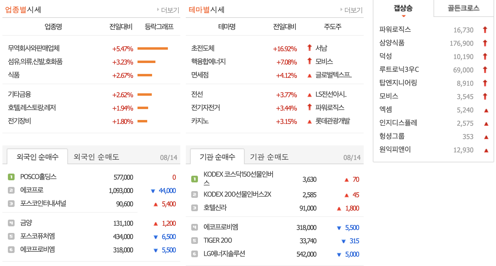 - [데이터로 보는 증시]해외 주요 증시 동향(8월 14일)