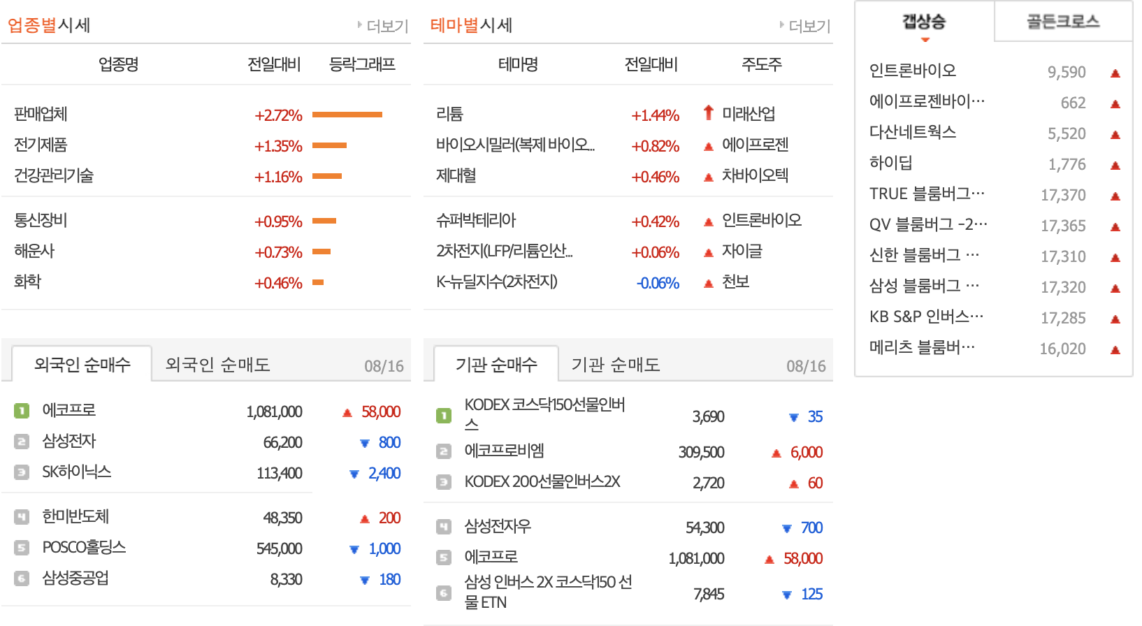 - 제목:[데이터로 보는 증시]해외 주요 증시 동향(8월 16일)