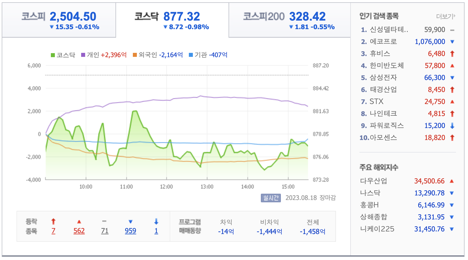 - [데이터로 보는 증시]해외 주요 증시 동향(8월 18일)