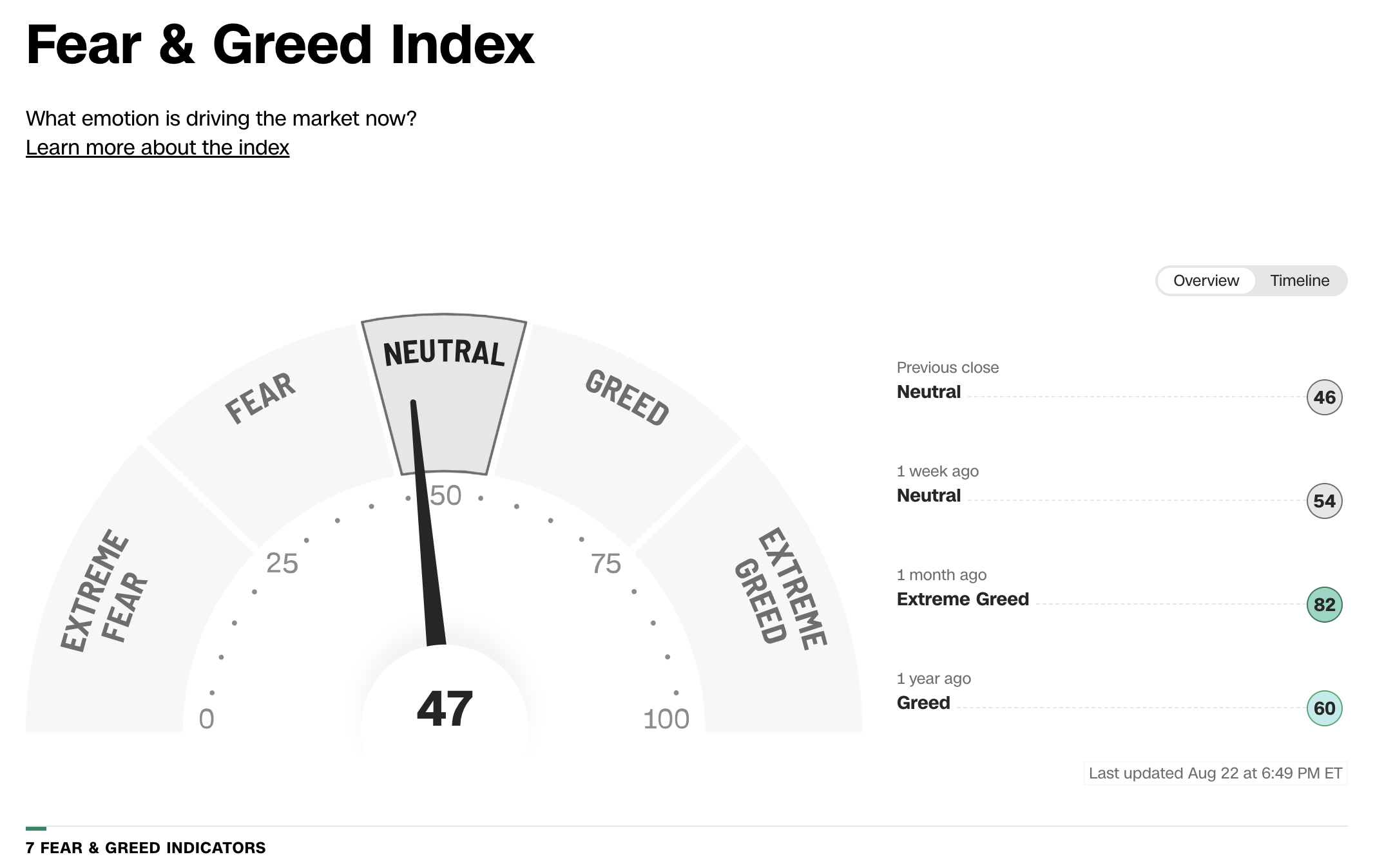 증시 공포와 탐욕지수 2023년 8월 23일 08:00