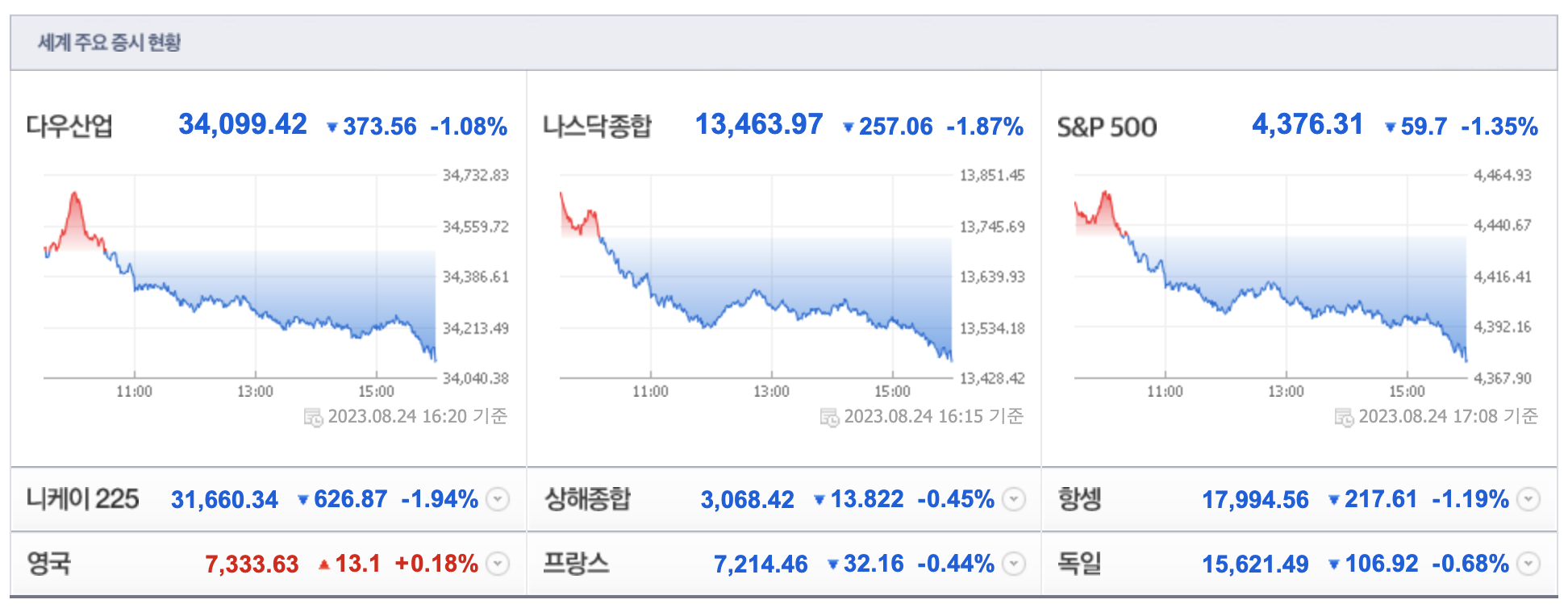 - [데이터로 보는 증시]해외 주요 증시 동향(8월 24일)