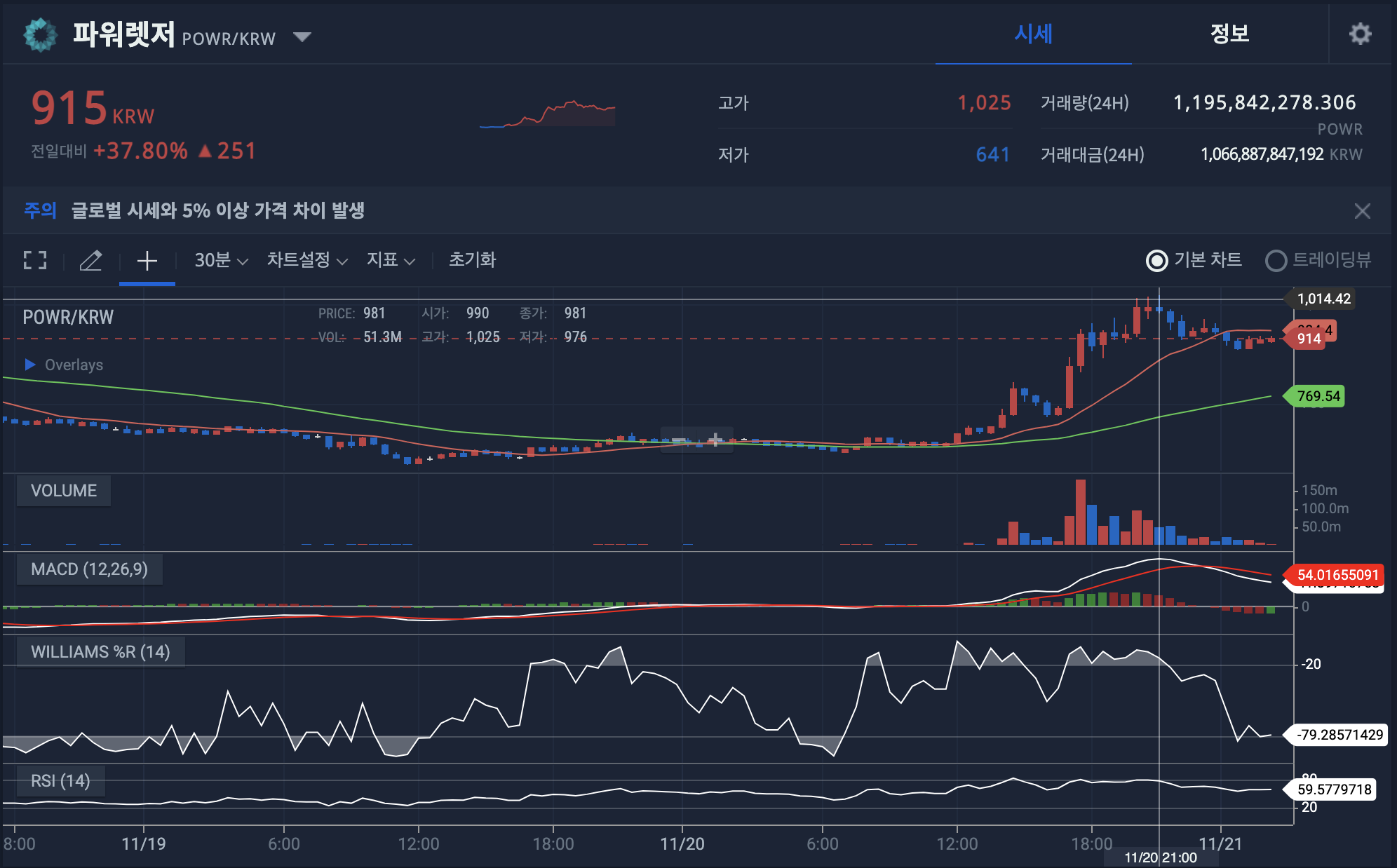 가상화폐 파워렛저 920원3855 거래중