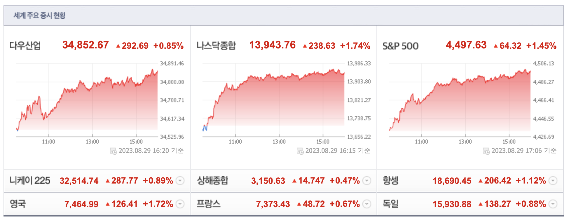 - [데이터로 보는 증시]해외 주요 증시 동향(8월 29일)