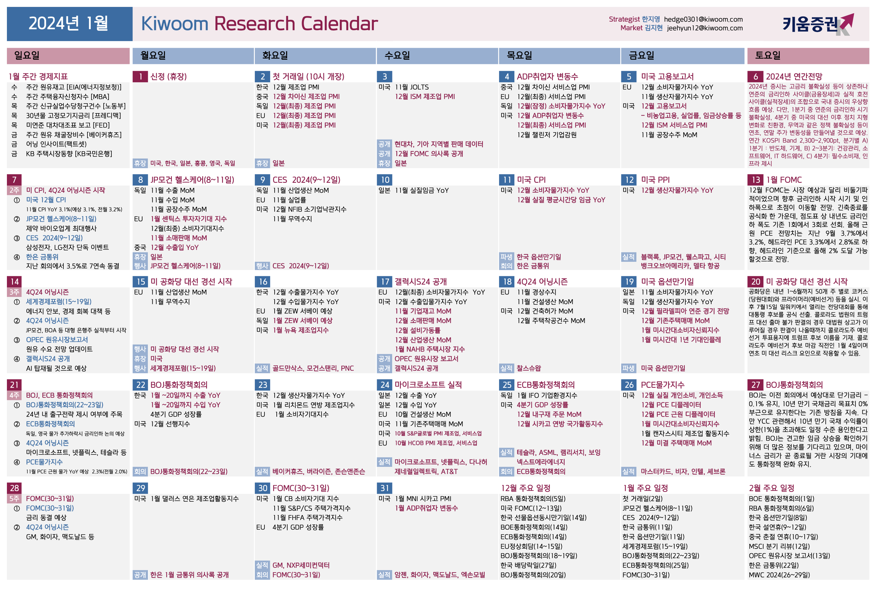 • 1월 17일: OPEC 월간 원유시장 보고서, 미국 12월 소매판매 발표, 삼성전자 갤럭시 S24(AI폰) 발표.