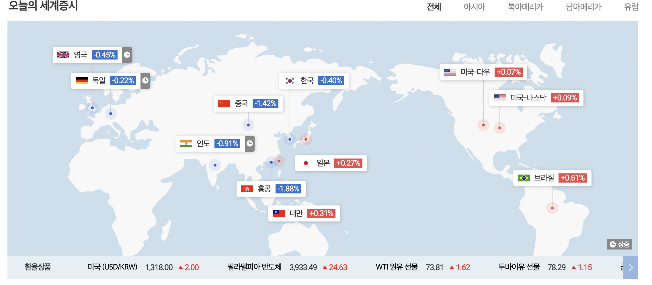 전세계 주식시장 흐름 2024년 1월 7일 (출처: 다음금융)