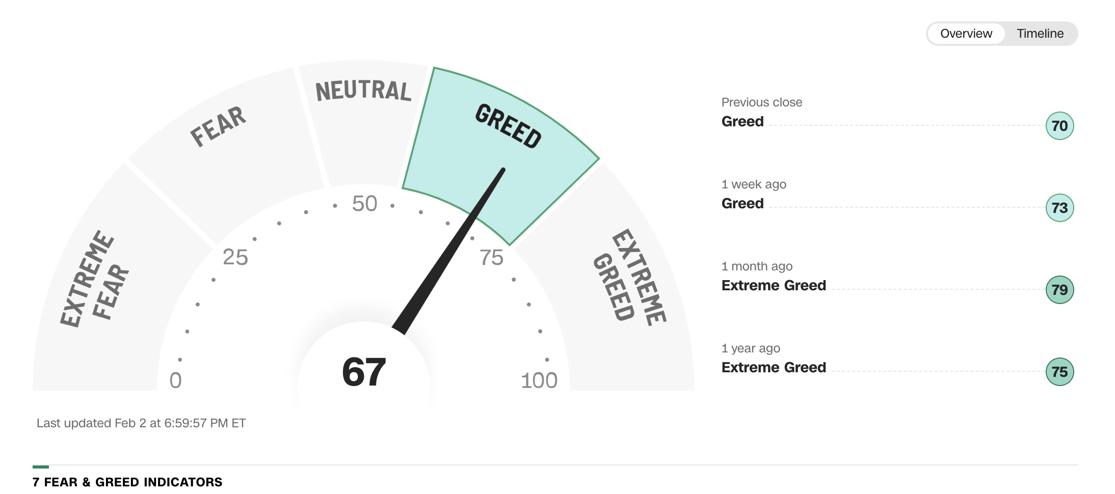 증시 공포와 탐욕지수 2024년 2월 5일 (출처: CNN비즈니스)