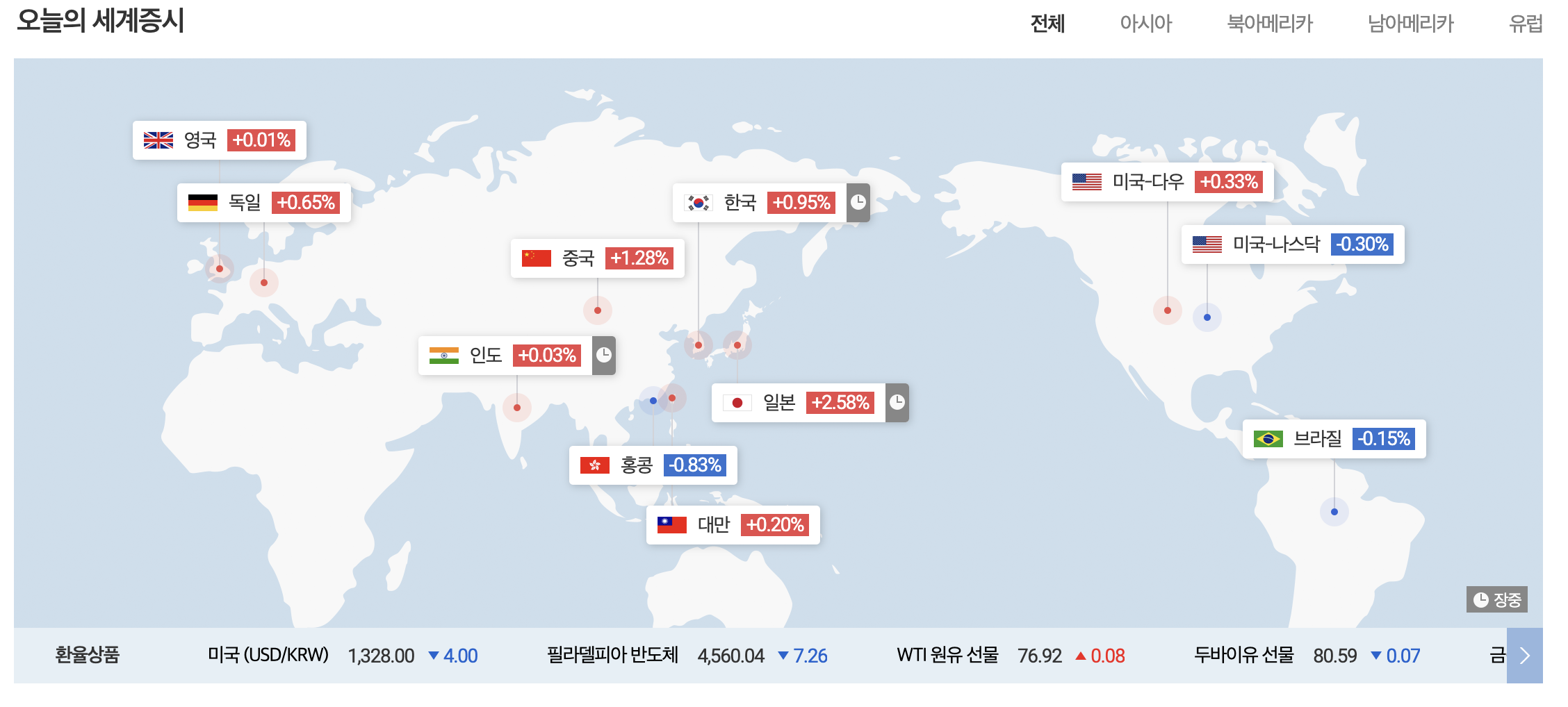 전세계 증시 현황 2024년 2월 13일 (출처: 다음금융)