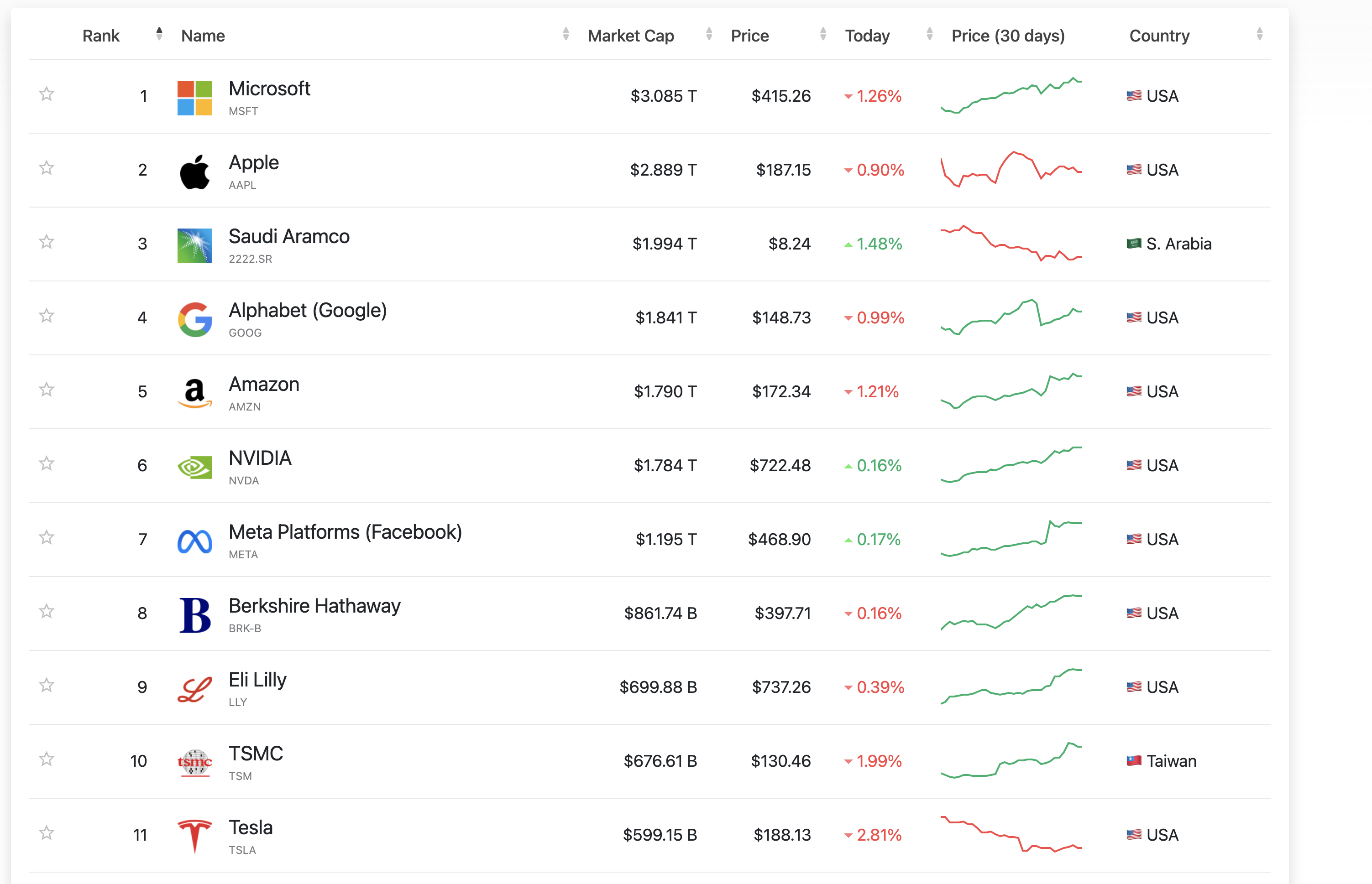 전세계 시가총액 순위 랭킹 2024년 2월 13일 (출처: 컴퍼니즈 마켓캡)
