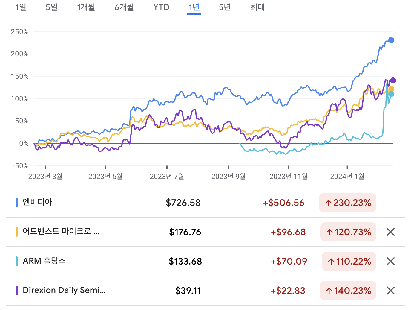 ⚙️ 국내외 반도체 산업 분석 총정리 - 엔비디아, TSMC, AMD, ARM 등 주가 상승률 비교 이외 국내 기업들 투자전략