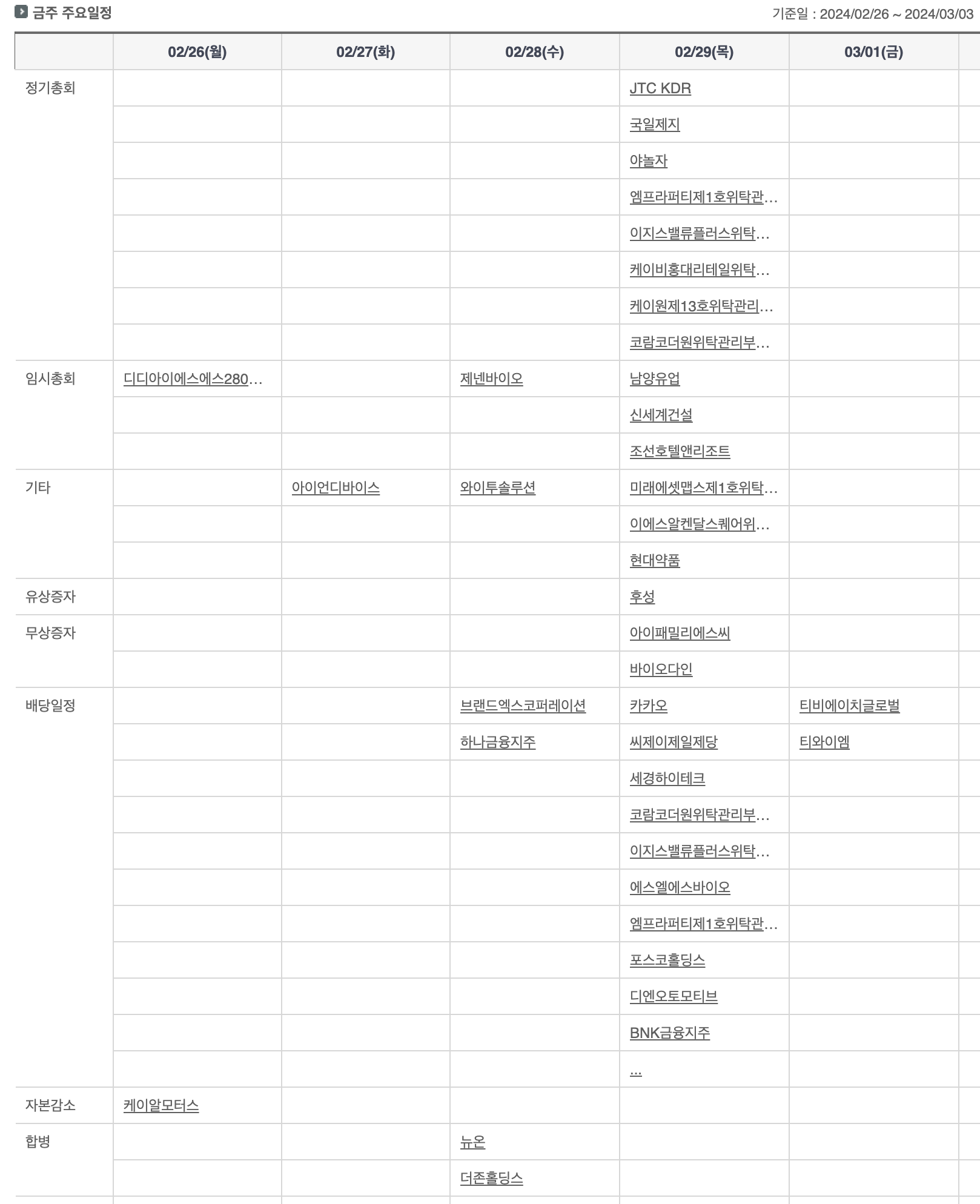 🗓️ 국내 금주 주요 일정