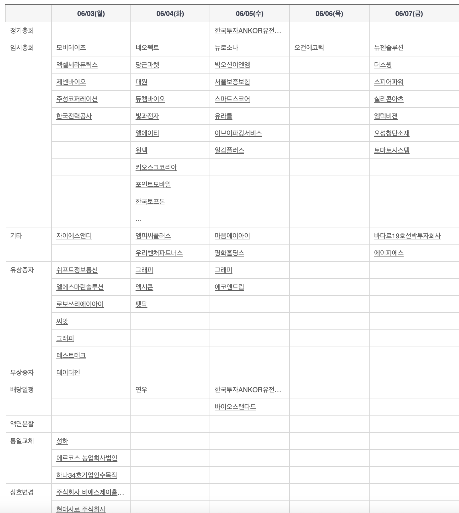 | 주간 증시 주요 일정 (6월 3~7일) |