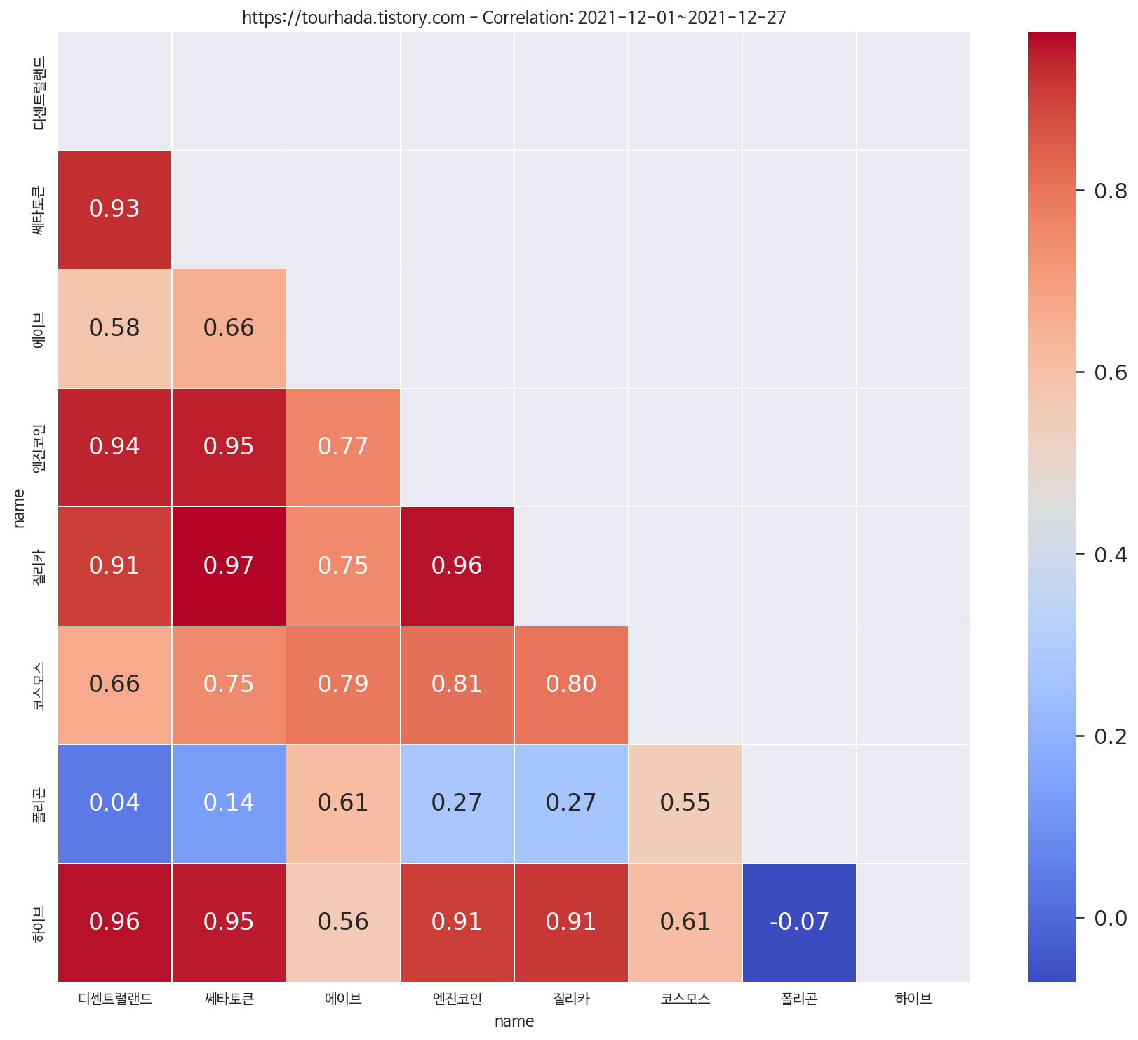 이들 종목들에 대한 상관관계를 분석해 보았다.