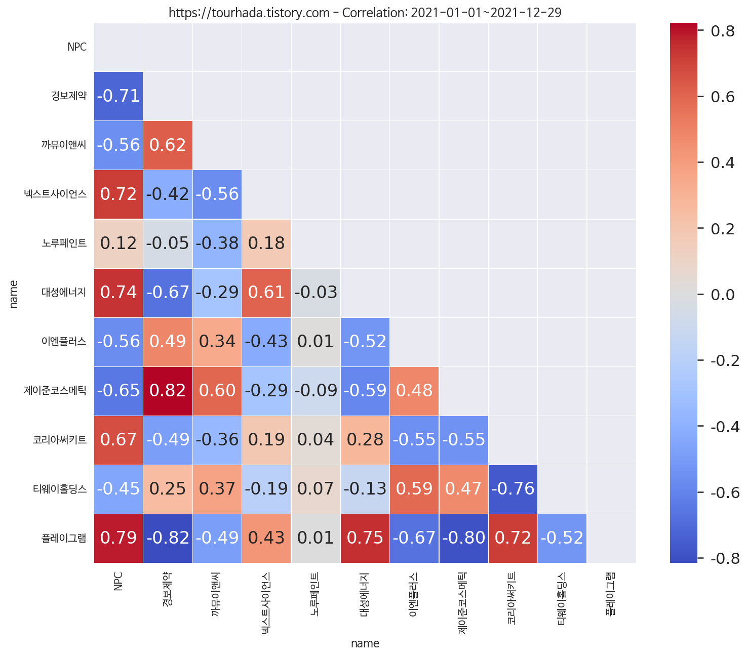 위 주식 종목 추천에서 상관 관계와 관련해서 궁금한 사항은 댓글이나 연락 남겨주시면 자세하게 설명드리겠습니다.