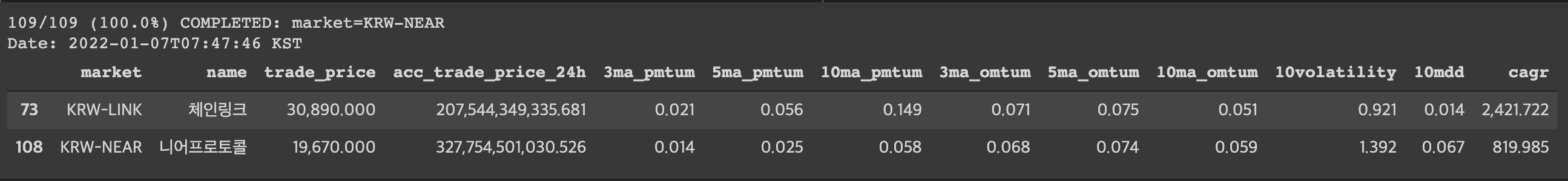 109/109 (100.0%) COMPLETED: market=KRW-NEAR