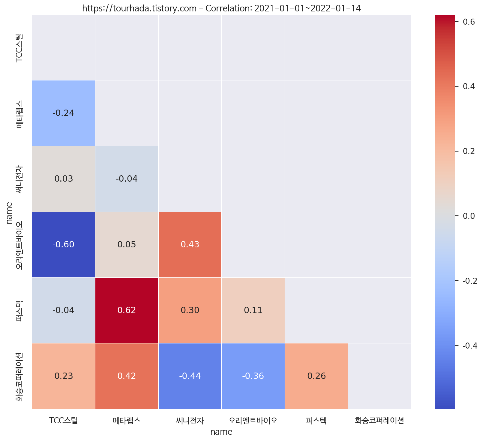 >위 주식 종목 추천에서 상관 관계와 관련해서 궁금한 사항은 댓글이나 연락 남겨주시면 자세하게 설명드리겠습니다.