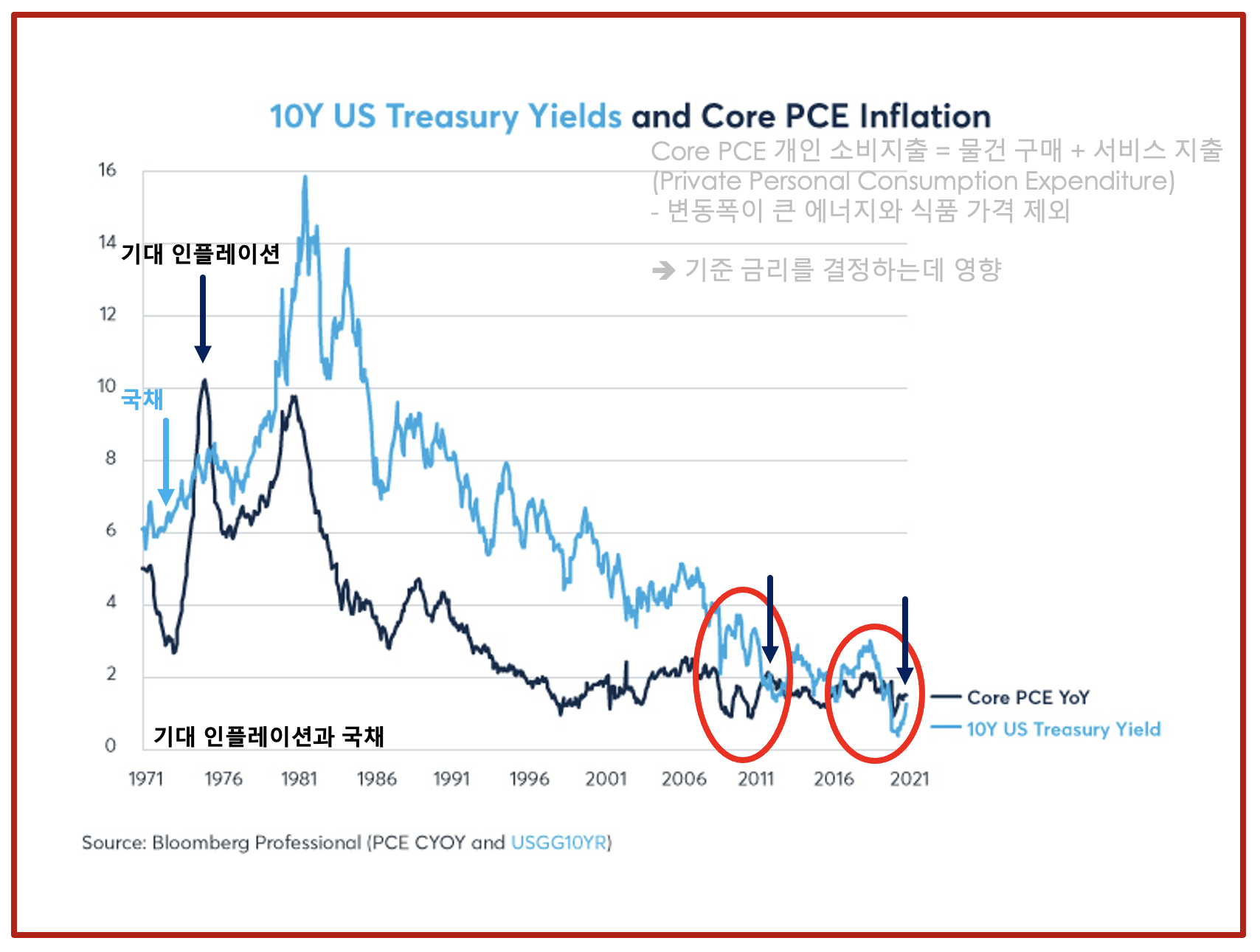 | 기대 인플레이션과 미국채 상관관계