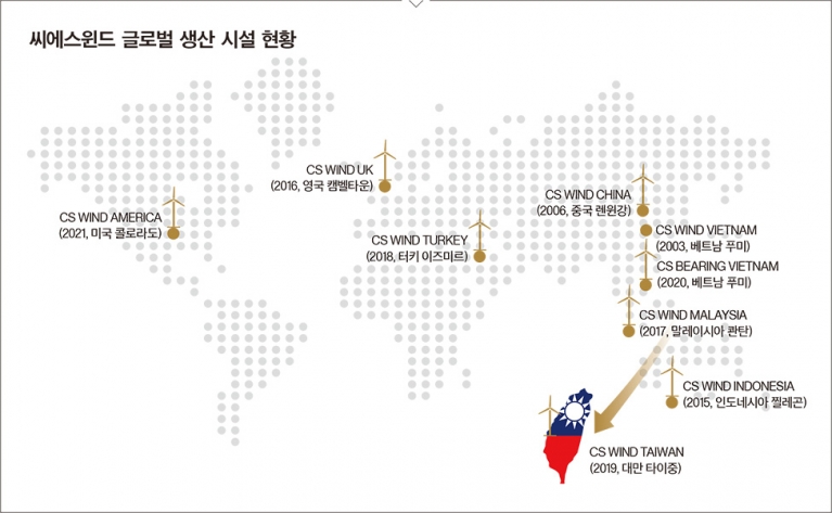 씨에스윈드 글로벌 생산 시설 현황 (자료: 씨에스윈드)
