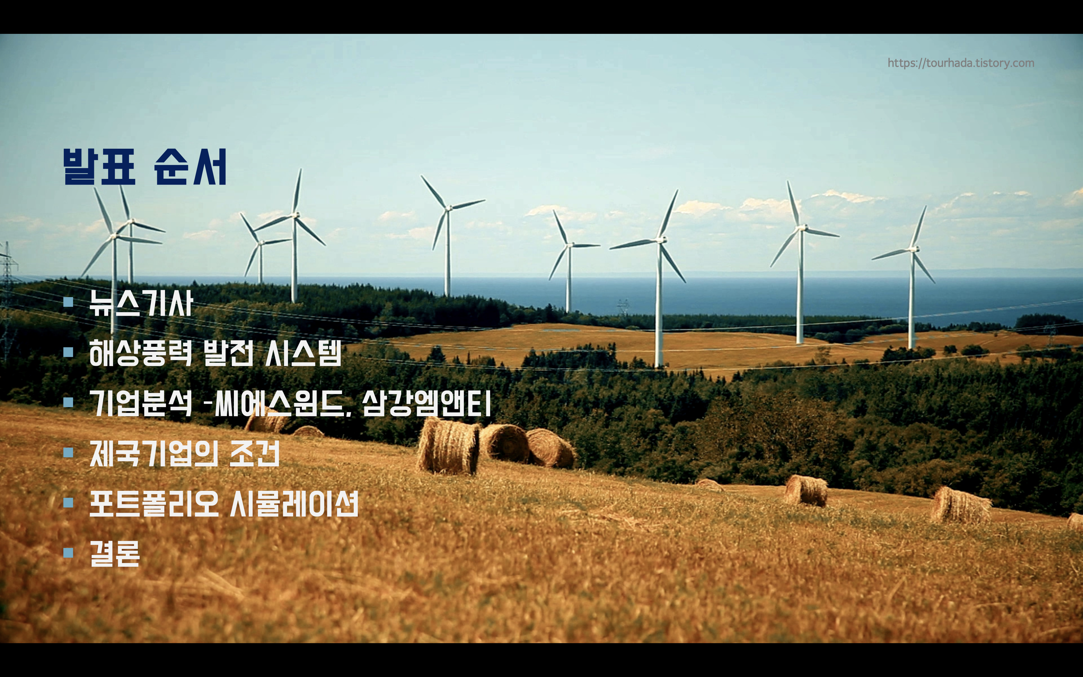 위 분석 내용들을 토대로, 씨에스윈드가 제국기업의 조건과 얼마나 부합한지 살펴보고, 국내 다른 풍력발전기업인 삼강엠앤티와의 포트폴리오 시뮬레이션을 통해서 어떤기업이 더 높은 수익률을 안겨다 줄것인도 살펴보도록 하겠습니다.