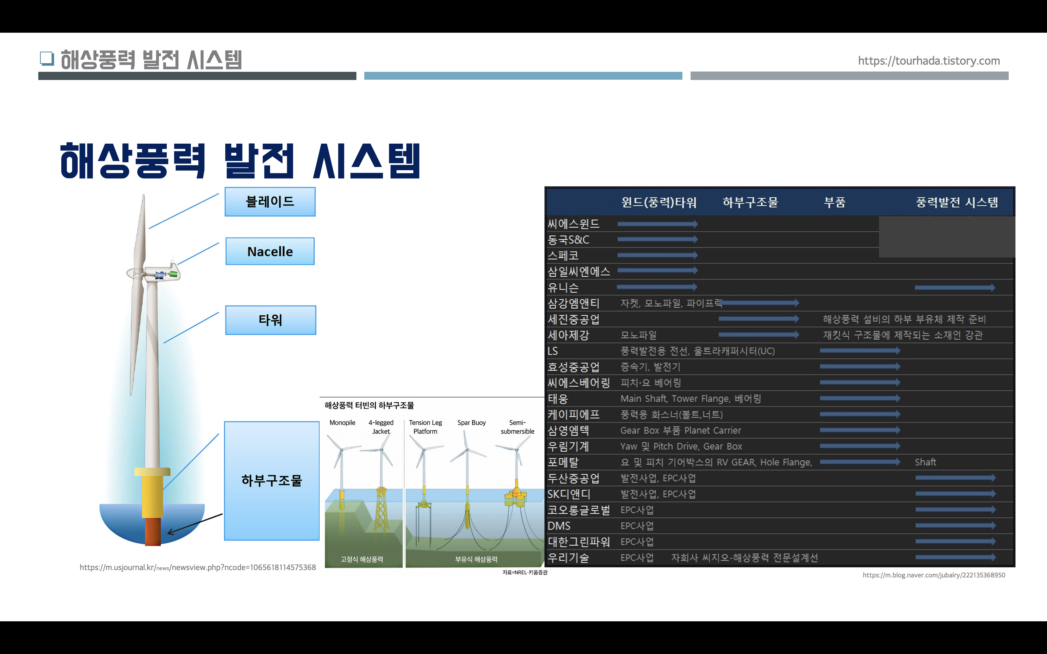 해상풍력 구조물과 관련기업들(자료: 울산저널)