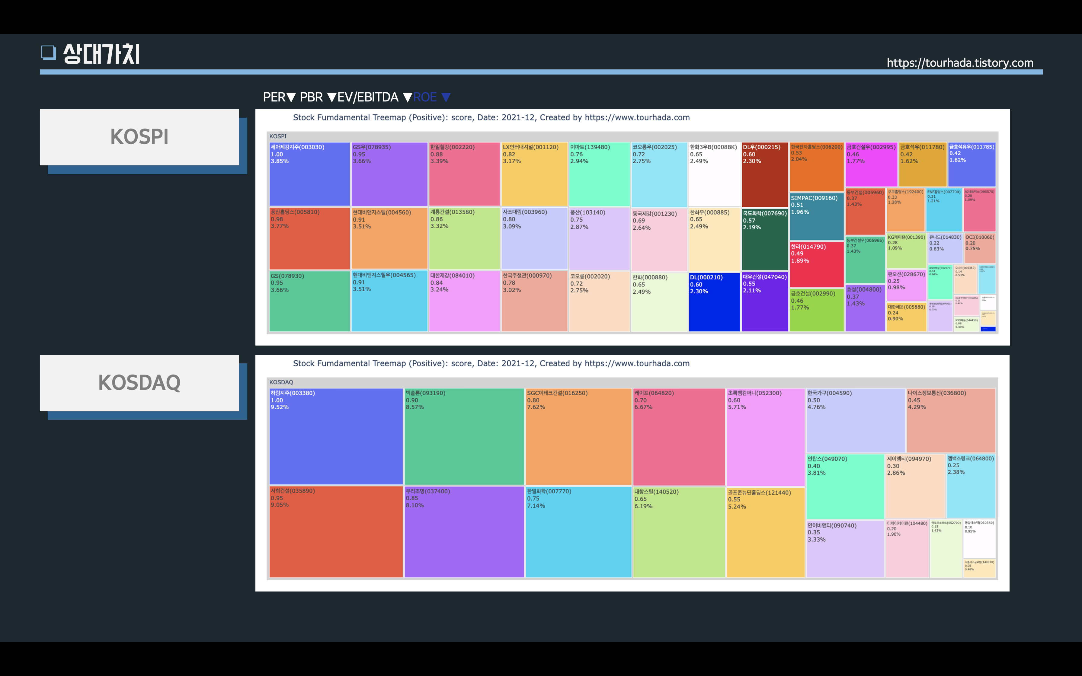 | 전체 기업 시장 가치평가 - PER, PBR, EV/EBITDA, ROE, 모멘텀 (0) | 2022.05.18 |