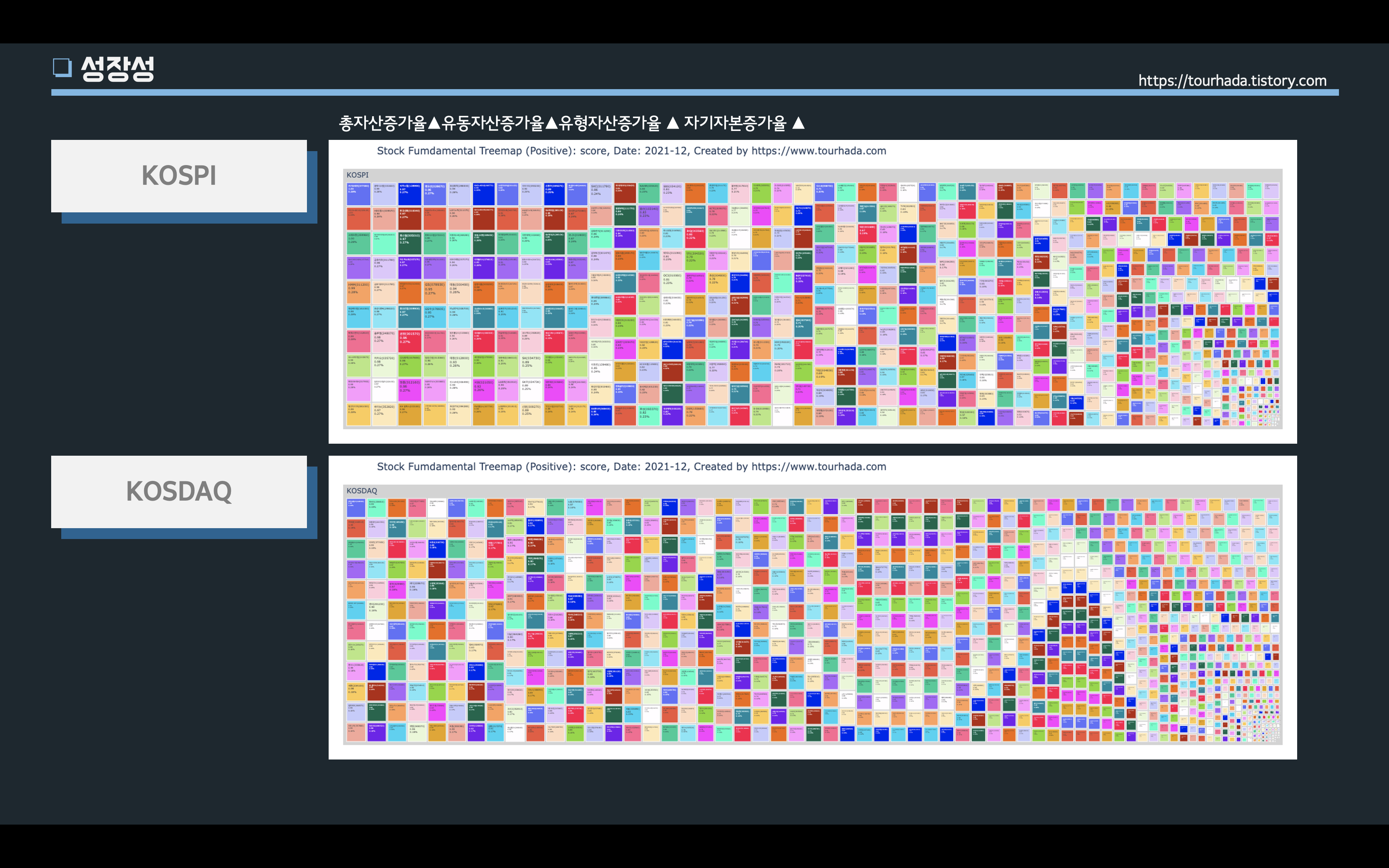 또다른 성장성 지표들 중에 총자산증가율, 유동자산증가율, 유형자산증가율, 자기자본증가율 네가지를 데이터 모델링으로 최고값과 최소값의 평균가중치로 백분위로 나눠서 서열을 재정리 해보았다.