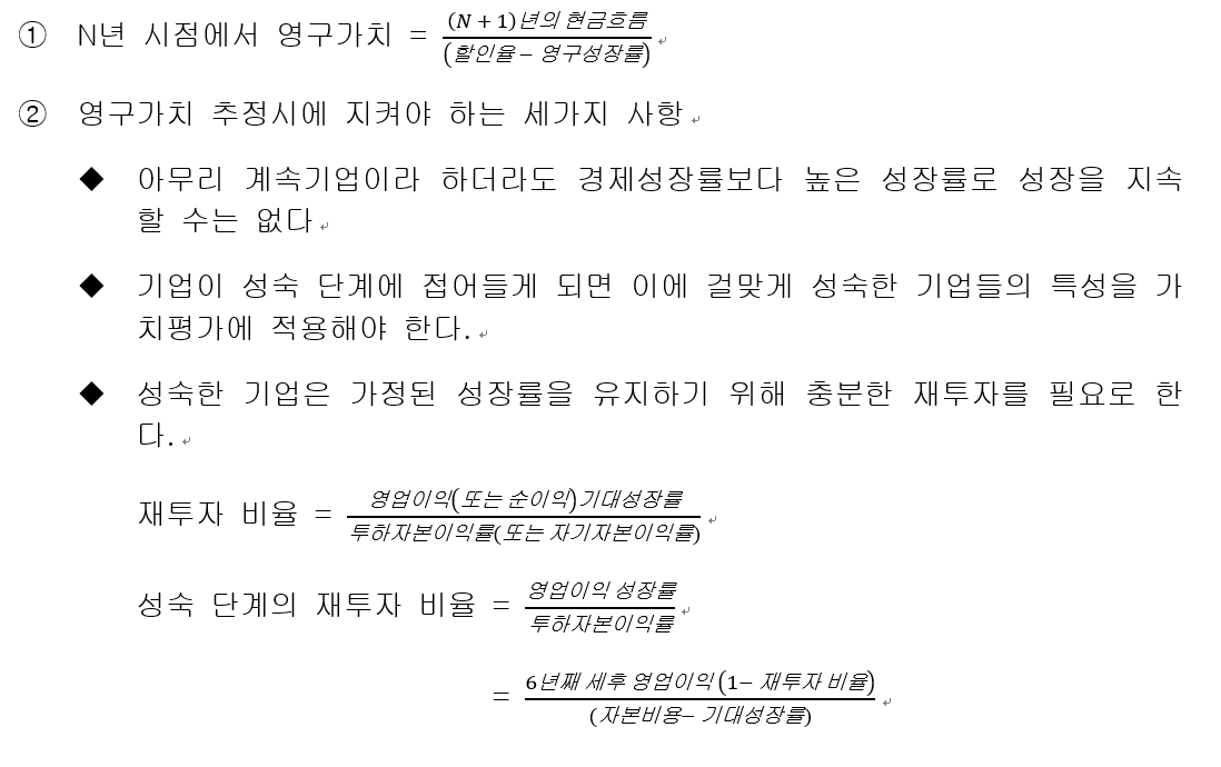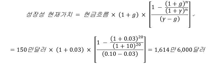 성장성 영구 현금흐름은 성장률 < 할인율 또는 경제 명목 성장률 보다 낮아야 한다.