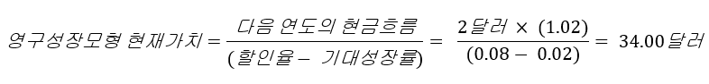 배당금 매년 2%씩 영원히 증가 예상, 위험 8%