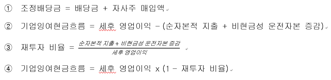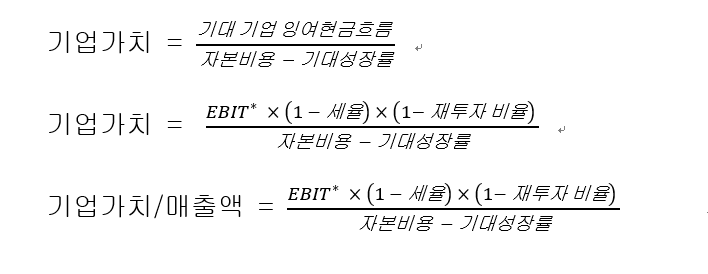 | 기업가치(Enterprise Value) | = 주식가치(Equity Value) + 순부채(Net Dept) |