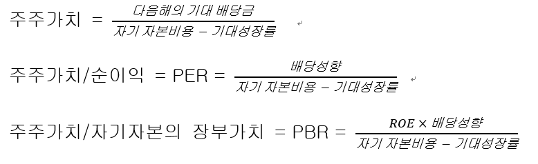 | 주식가치(Equity Value) | = 주당가격 x 발행주식 총수 = 기업가치(Enterprise Value) - 순부채(Net Dept) |