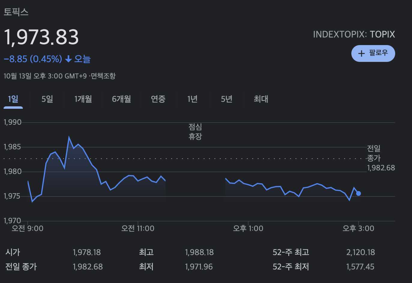 도쿄 증권거래소 1부에 상장된 일본내 기업들(2006년 10월 31일 현재 1700개)의 주가를 나타낸 지표이다.