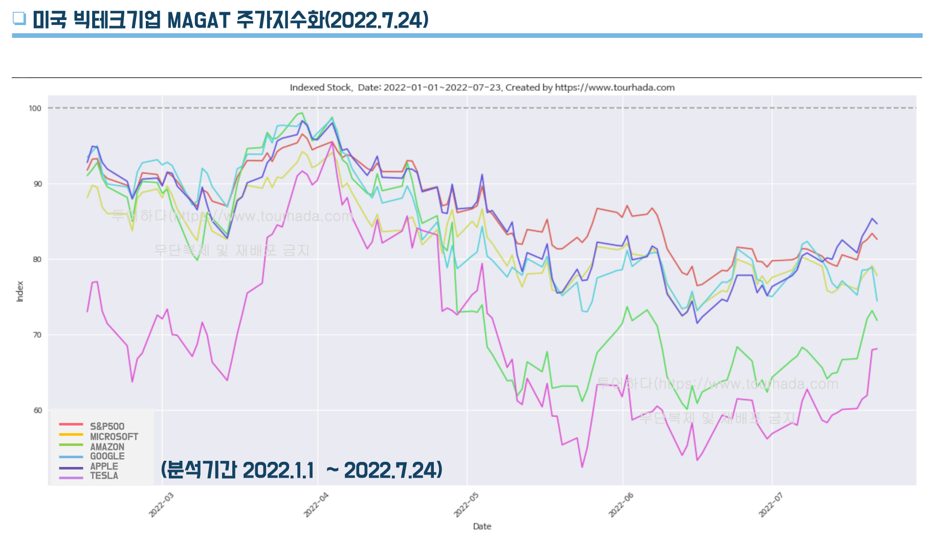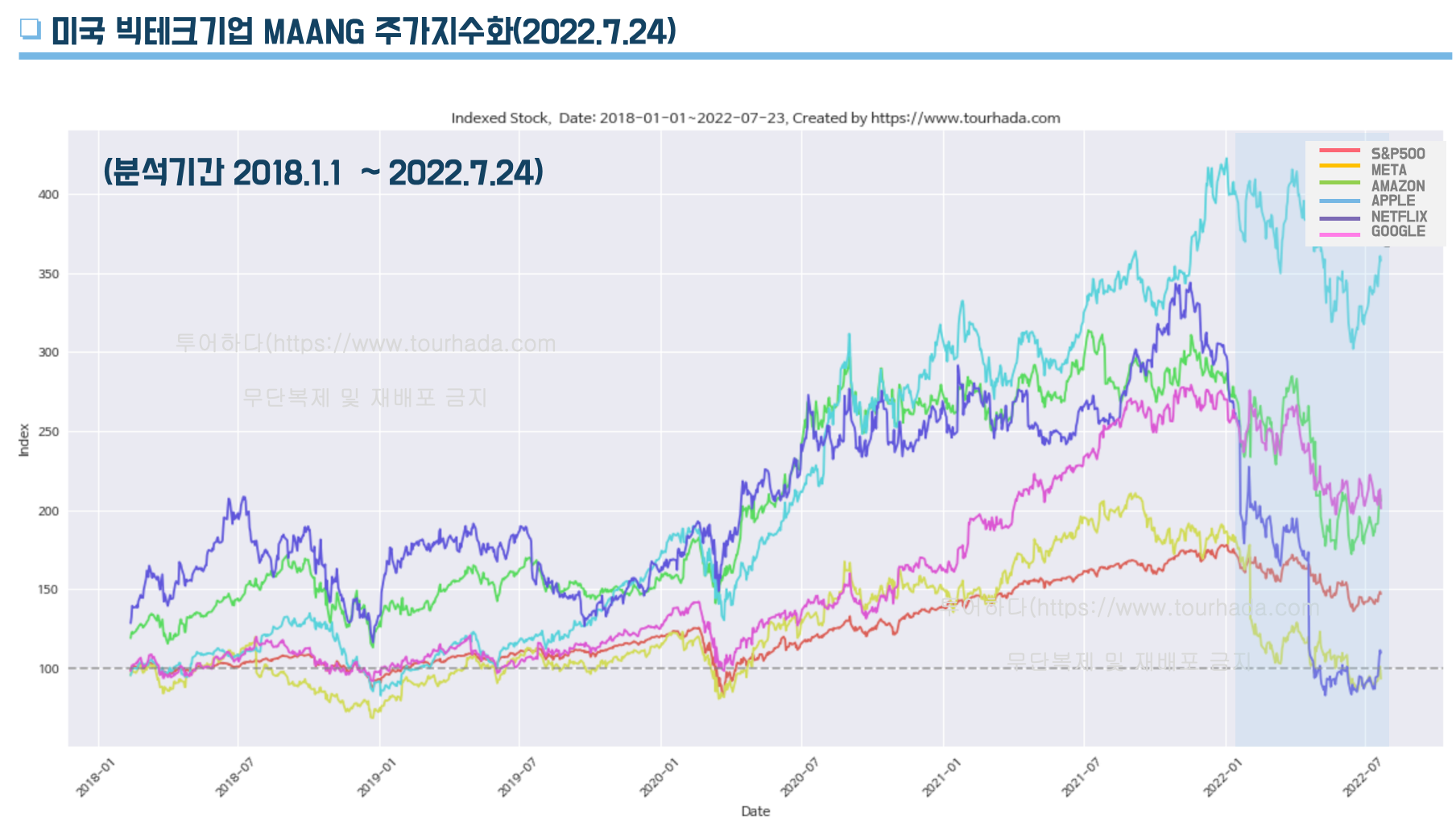 글로벌 빅테크 기업의 주가 변화를 비교하면서 2022년 2분기 7월 실적발표을 앞두고 투자하는데 도움이 될 듯하여 여러 자료들을 분석해 보았습니다.