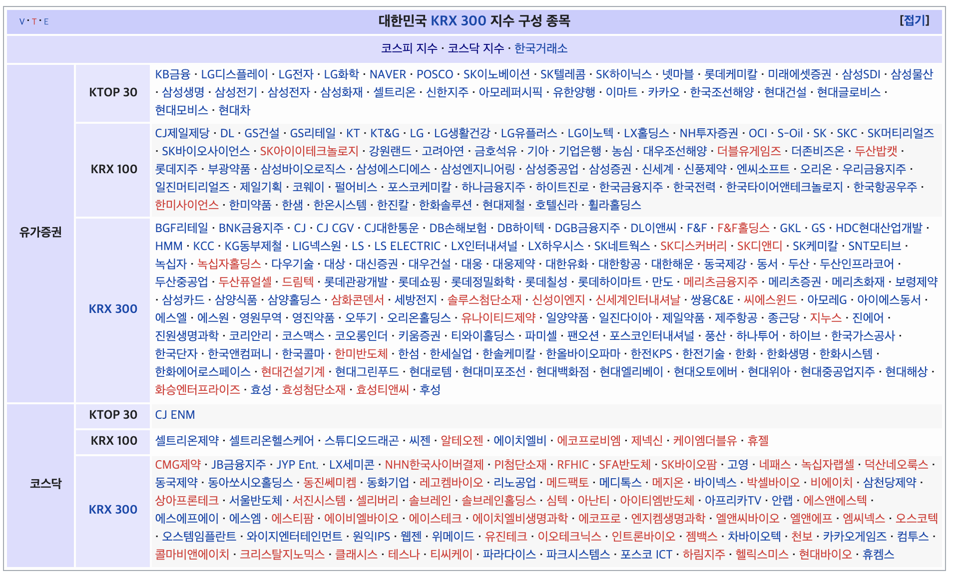 대한민국 KRX 300 지수 구성 종목유가증권코스닥