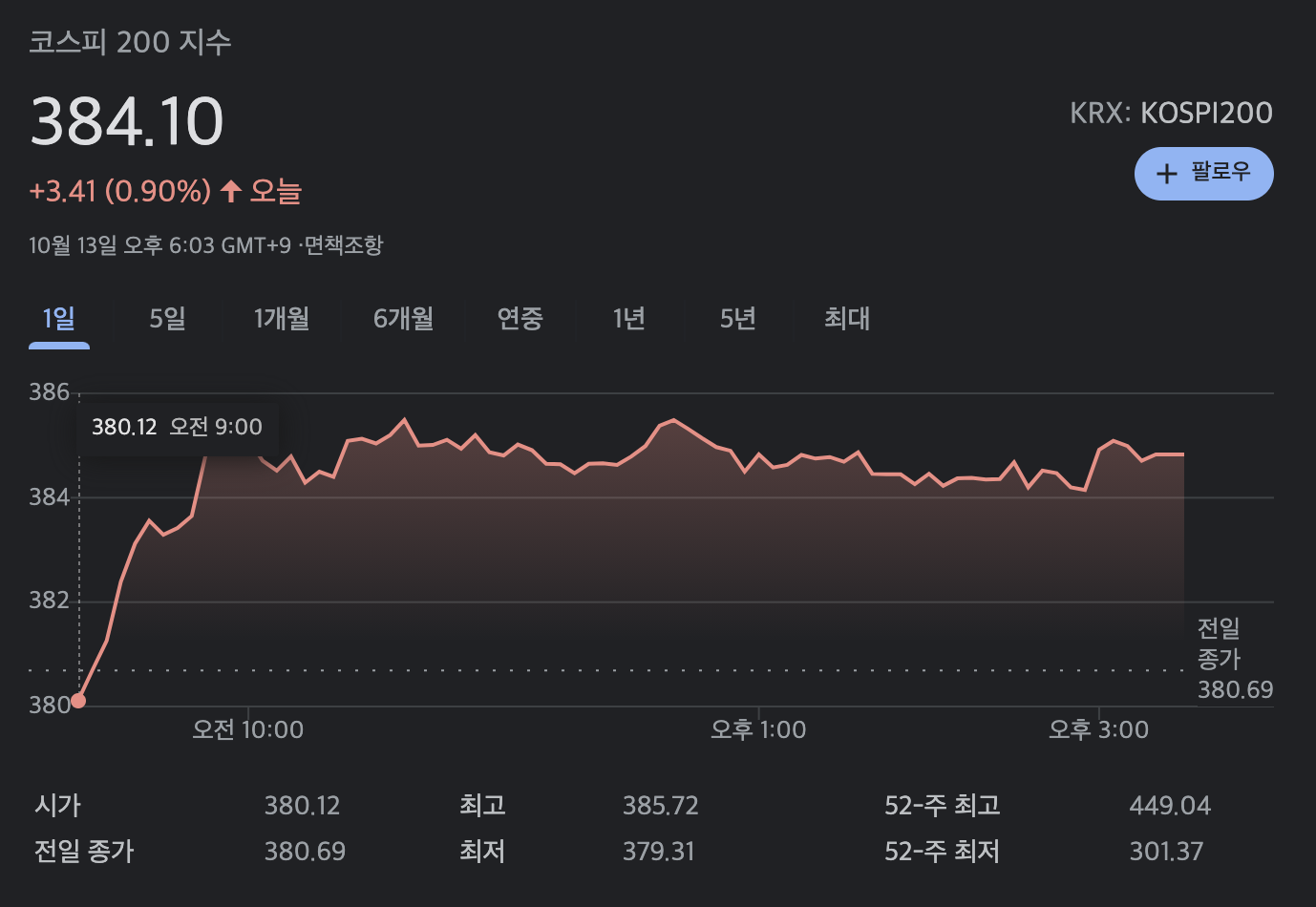 <그림 2-1> 코스피 200 지수 (2021년 10월 13일 기준)