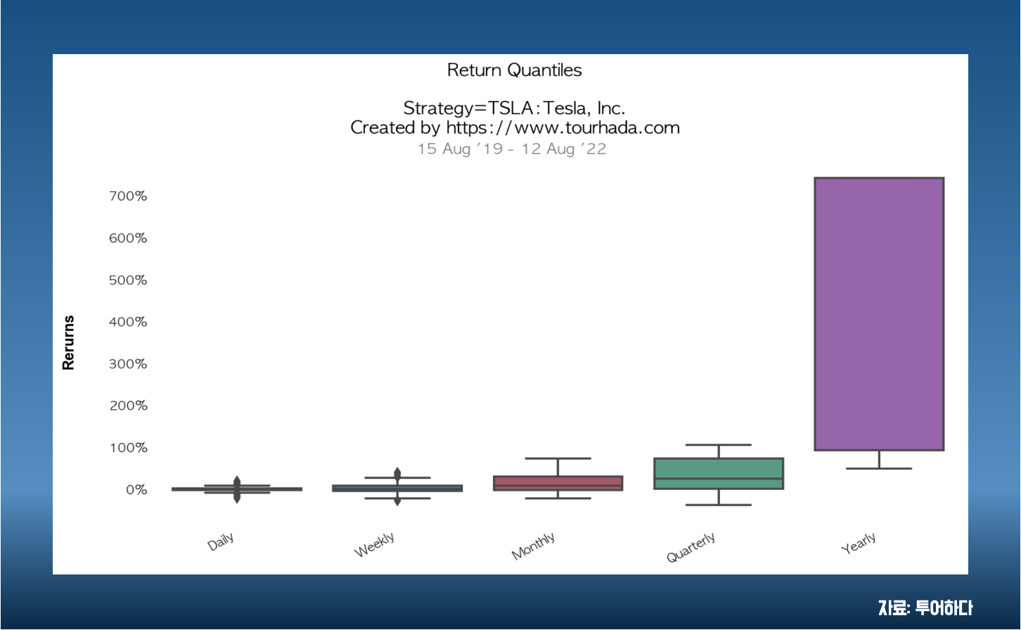 2019년 9월부터 2022년 9월까지 Tesla, Inc.는 벤치마크 지수인 NASDAQ Composite(IXIC)에 비해 상당한 수익을 창출했습니다. 다음은 이 기간 동안 Tesla의 누적 수익률에 대한 일반적인 추정치입니다.