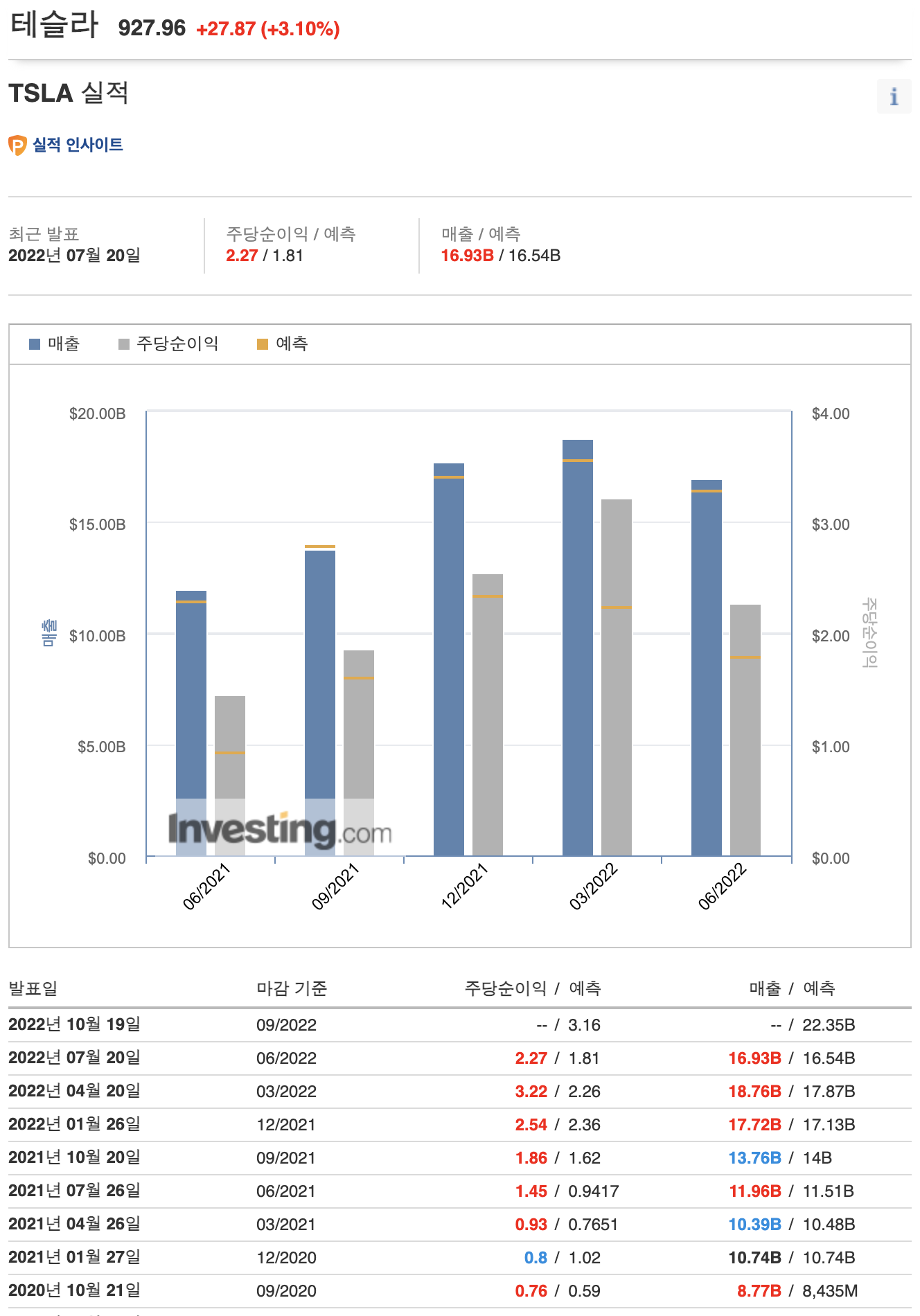 <인베스팅닷컴> 테슬라 실적