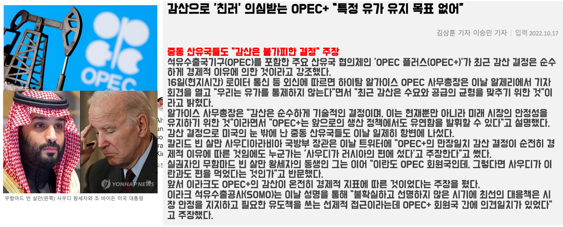 감산으로 '친러' 의심받는 OPEC+ "특정 유가 유지 목표 없어”