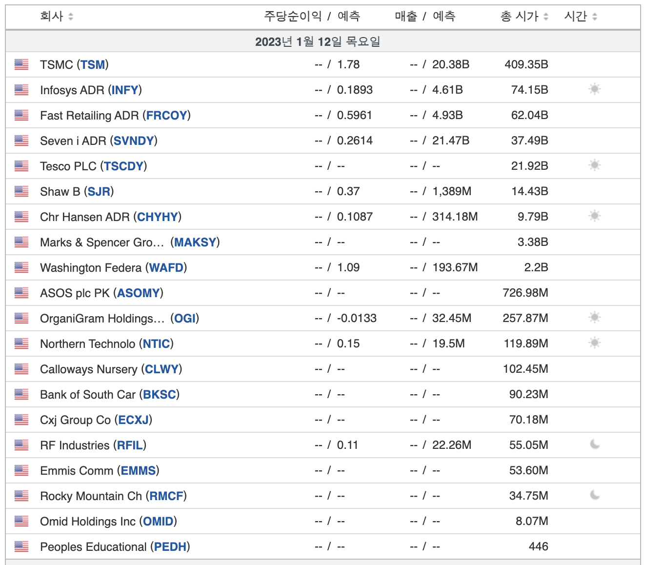 < 해외 기업 실적발표 일정 >
