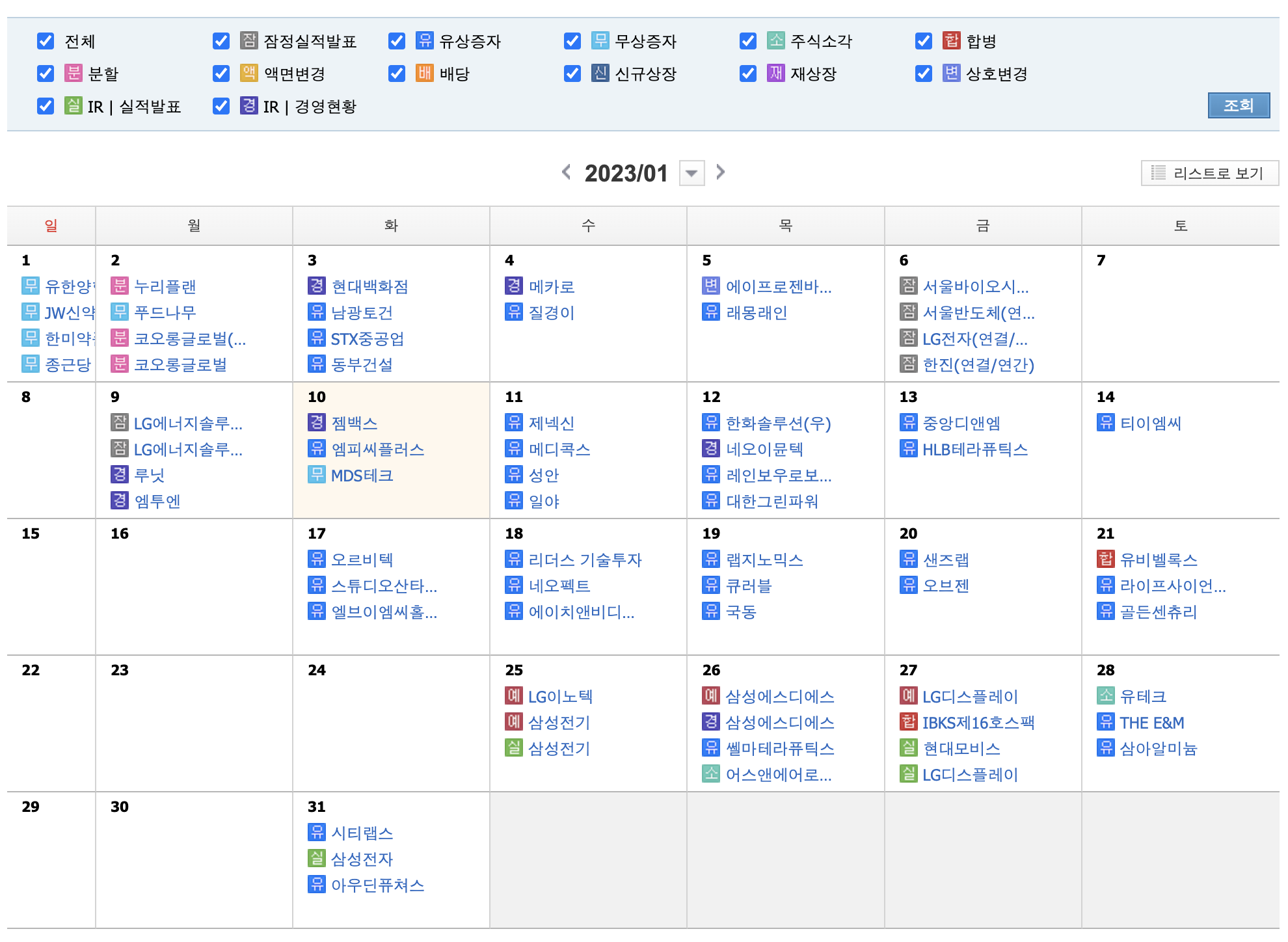 2023년 1월 국내와 해외 기업 실적발표 및 경제지표