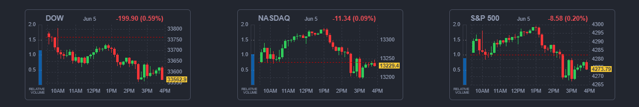 미국 부채 한도 문제가 해소되면서 미 재무부가 막대한 국채를 발행할 것으로 예상되자 뉴욕 증시에서는 국채 발행에 대한 우려가 나타났다. 다우존스30산업평균지수는 전장보다 0.59% 하락한 33,562.86에 거래를 마쳤다. 이에 따라 S&P500지수와 나스닥지수도 각각 0.20%, 0.09% 하락했다. S&P500지수는 이날 장중 한때 4,299대로, 올해 최고치이자 지난해 8월 이후 최고치를 기록한 후 반락했다. 나스닥지수도 장중 1만3,330대에서 지난해 4월 이후 최고치를 기록한 후 상승폭을 줄였다. 미국의 고용 지표가 견고하며, 부채 한도에 따른 미국 채무불이행(디폴트) 불안도 해소돼 위험 선호 심리가 부각됐다. 하지만 미 재무부가 막대한 국채를 발행할 것으로 예상되자 시장의 유동성이 고갈될 수 있다는 우려가 나왔다. 대규모 국채 발행의 영향으로 은행 부문의 유동성이 줄어들고 단기 조달 금리가 상승하며 경기 침체 위험까지 높아질 수 있다는 것이다. 이에 따라 씨티그룹은 뉴욕 증시 벤치마크인 S&P500지수가 향후 2개월 동안 5.4% 하락할 수 있다고 추정했다.