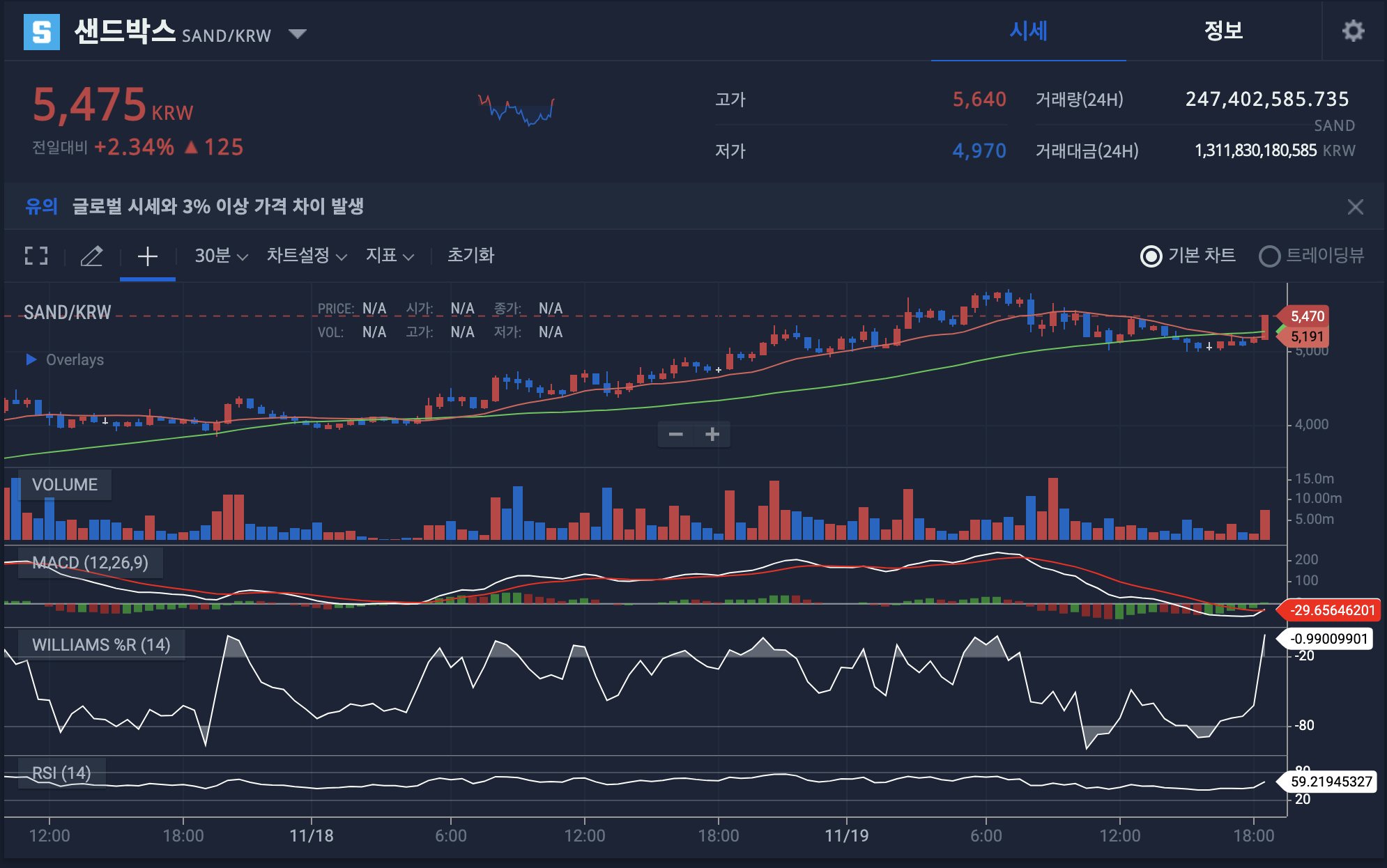 | 코인 소개 샌드박스는 플랫폼의 유틸리티 토큰인 SAND를 사용하여 이더리움 블록체인의 게임 내 경험을 만들고 보유하고 수익화할 수 있는 가상 세계 입니다. 플레이어가 디지털 자산(Non-Fungible Tokens, NFT)을 생성하여 마켓플레이스에 올리고, 드래그 앤 드롭 하여 샌드박스 게임 메이커로 다양한 게임 내 경험을 만들 수 있습니다. |