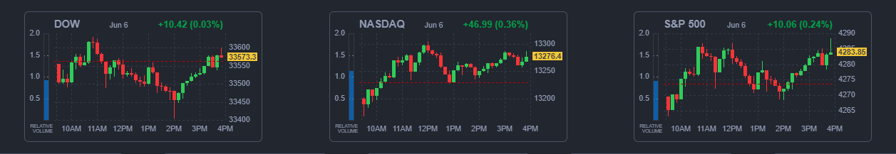 미국증시는 6월 기준금리 동결을 예상하면서 강보합세를 유지하고 있다. S&P 500 지수는 9개월 만에 최고치를 돌파하면서 나스닥에 이어 랠리를 보이고 있다. 이번 주 연방준비제도이사회(Fed) 회의에서 금리 인상을 결정하지 않을 것으로 예상되며, 이는 주식시장에 호재가 될 것이다. 하지만 인플레이션과 은행권 스트레스로 인해 세계경제 성장률이 둔화될 것으로 예상되어 증시 약세 전망이 나오고 있다. 그러나 AMD에 대한 긍정적인 데이터센터 수요와 TSMC의 울트라칩 사용 발표로 인해 관련 주식들은 상승세를 보이고 있다. 이번 주 증시는 연준의 결정에 따라 움직일 것으로 예상된다.