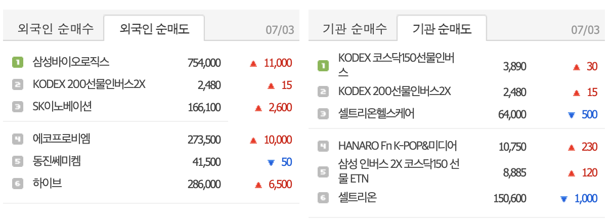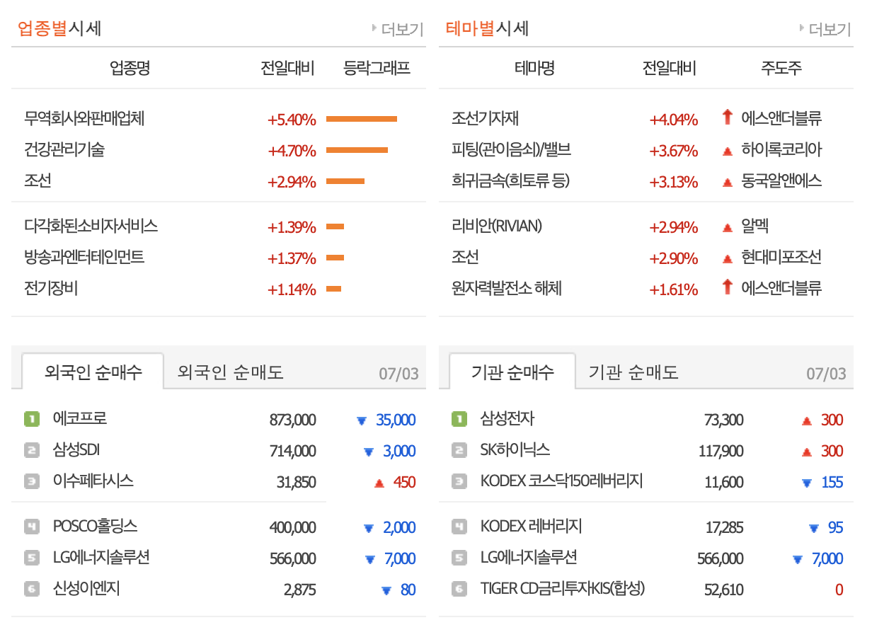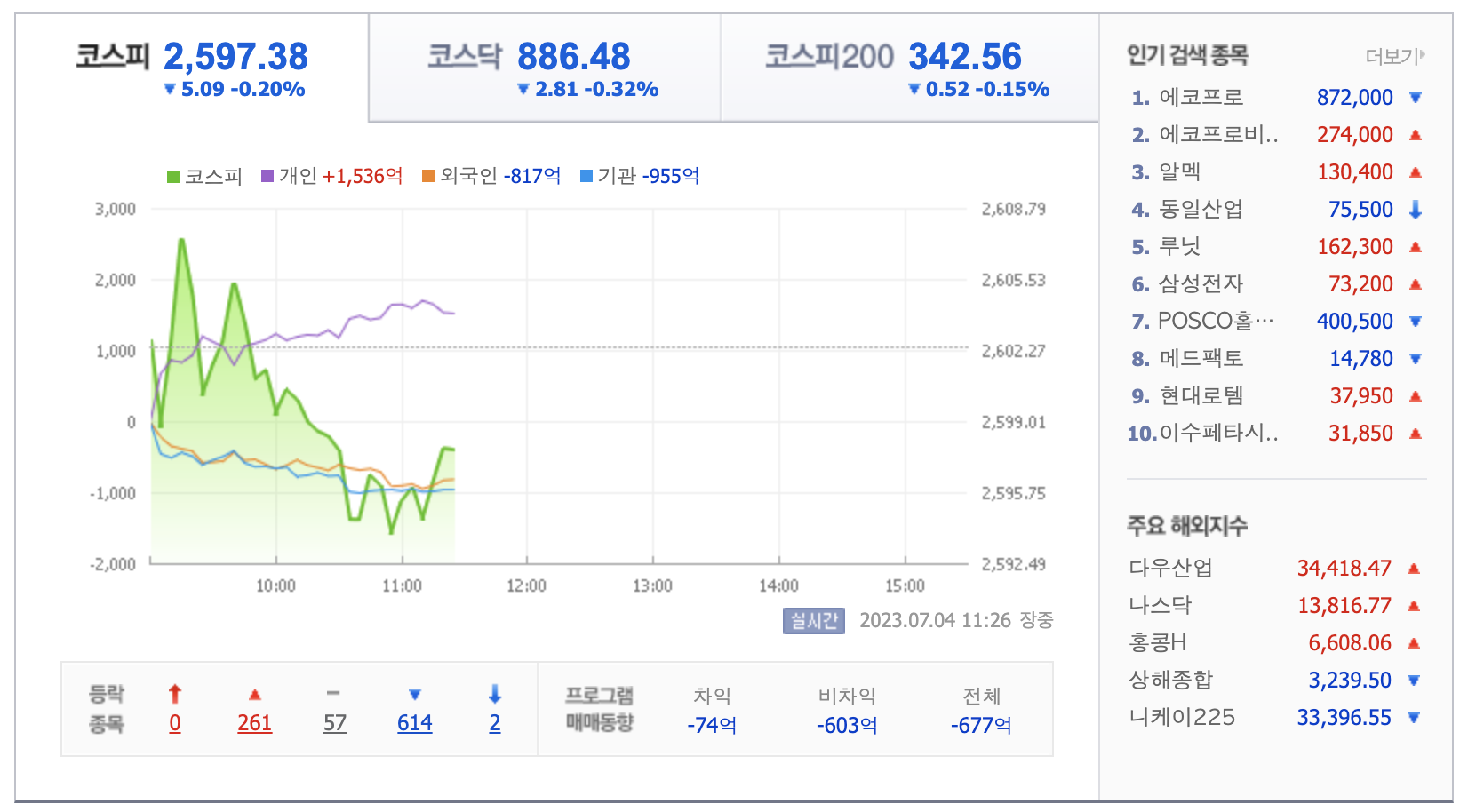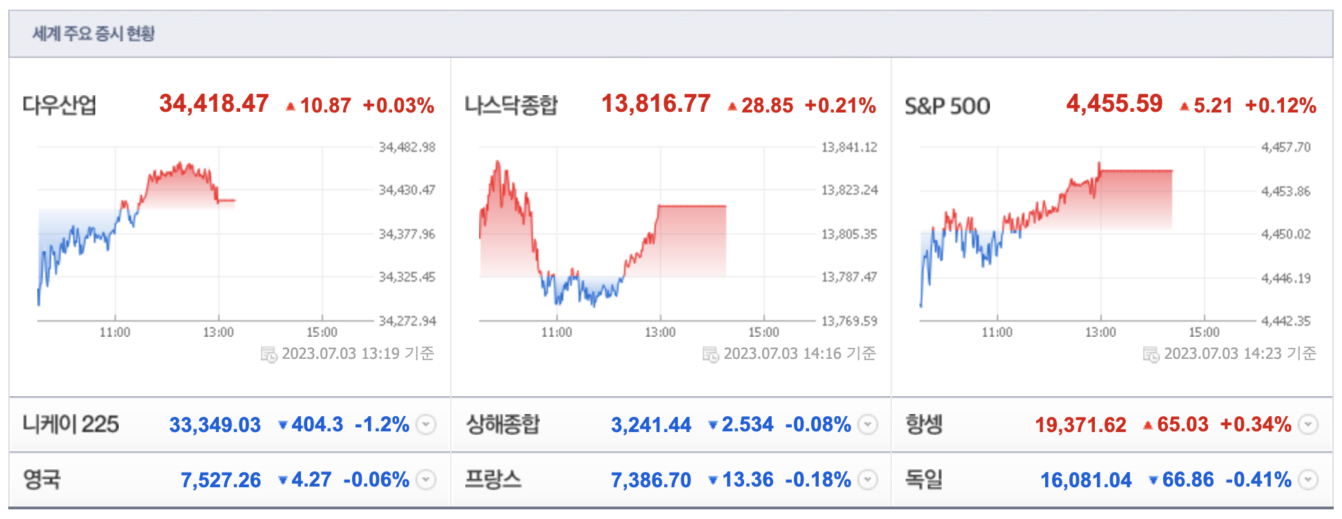💠 미국과 한국 주식시장의 상반된 모습 [날짜: 2023-07-04]