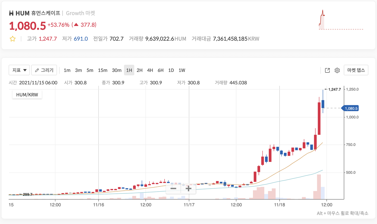 휴먼스케이프 코인 종목 분석(코인원 시세분석)