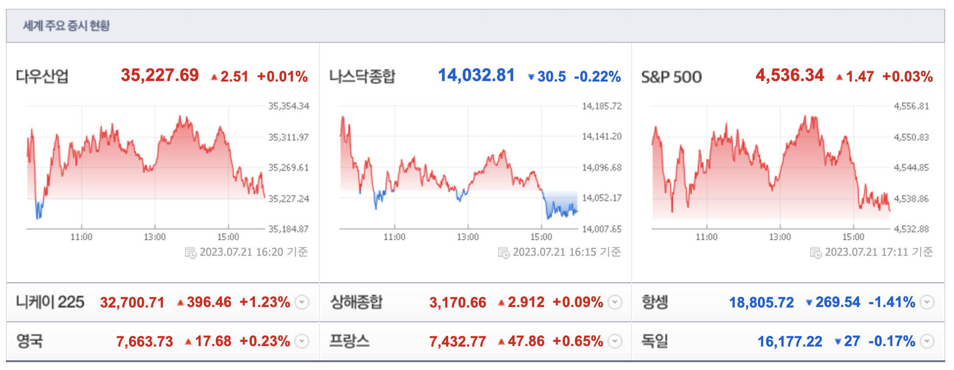 - 제목:[데이터로 보는 증시]해외 주요 증시 동향(7월 21일)