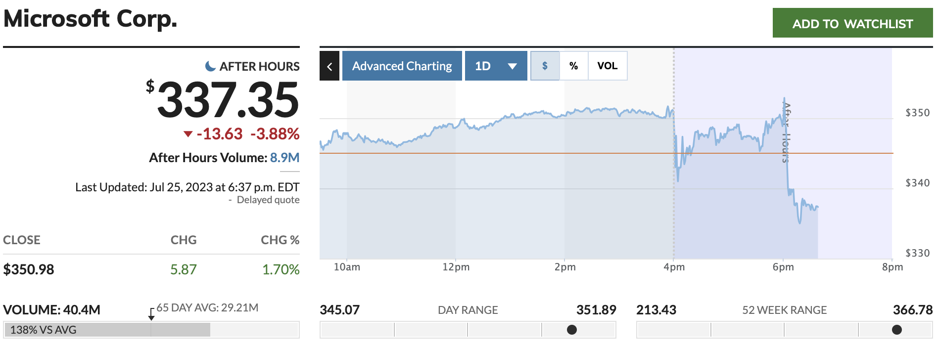 Q. 마이크로소프트와 구글 실적발표 모두 예상치를 상회해서 나왔는데 주가 향방은 정반대인 이유는?