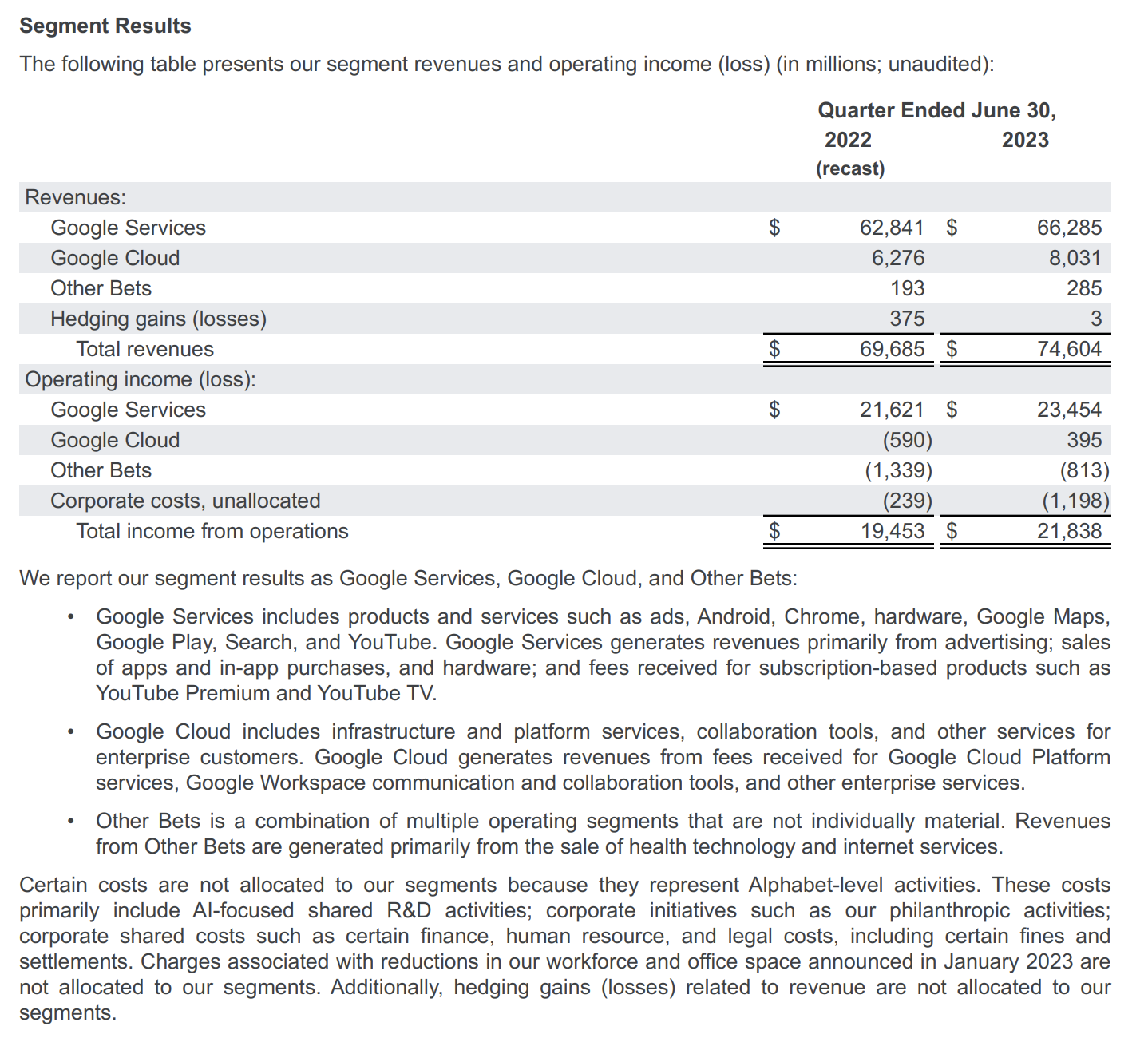$GOOG Alphabet Q2 FY23: