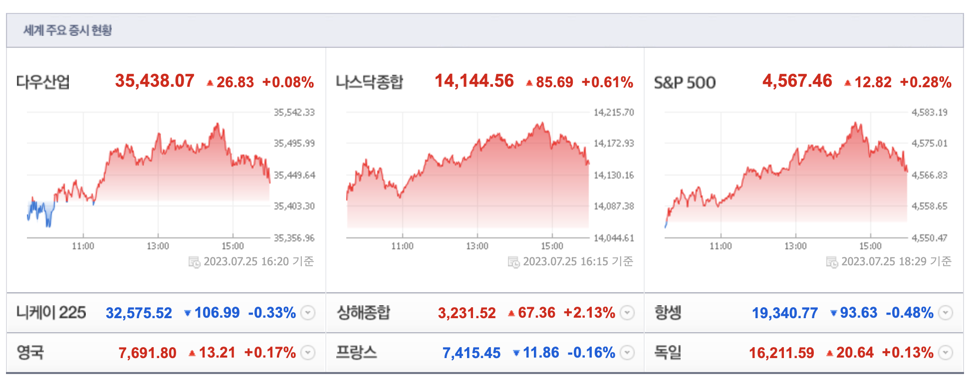 - 제목:[데이터로 보는 증시]해외 주요 증시 동향(7월 25일)